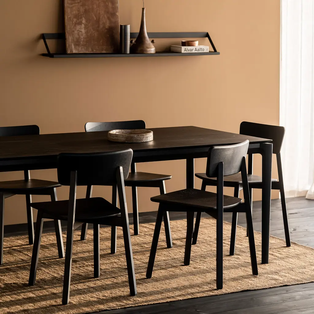 Create your dream dining space with the elegant and simply beautiful Bok Dining Table. Part of the Ethnicraft collection of furniture, this modern dining table is carefully made from solid wood to last and age with grace. The edges are slightly upturned with elegant curves, giving a nod to the source of inspiration of the Bok collection: goat horns. Spacious to seat 8 people in comfort, this solid wood table is suitable for indoor use only. Sent flat-packed to minimize packaging, this product comes with included hardware for easy assembly. The Bok dining table comes in natural oak or with a black finish. Extendable version and outdoor-friendly versions of this design are also available.