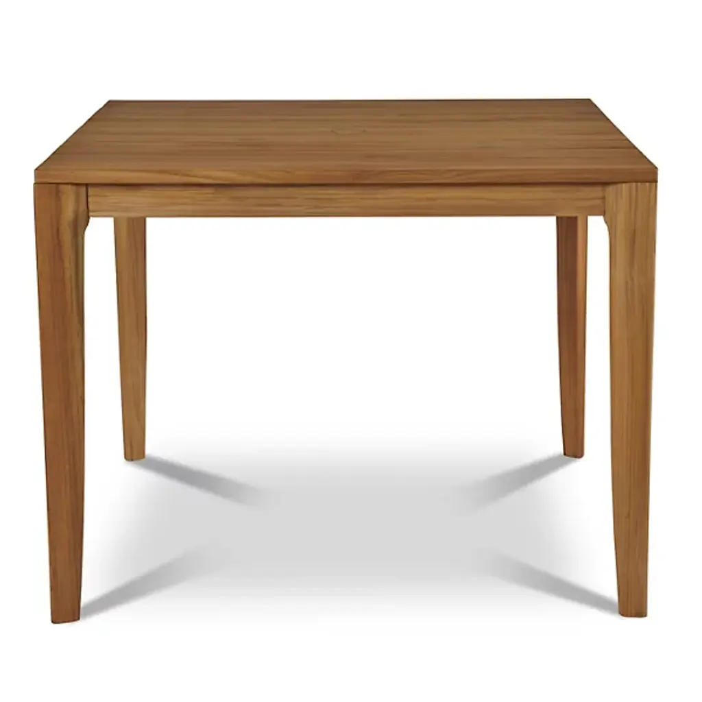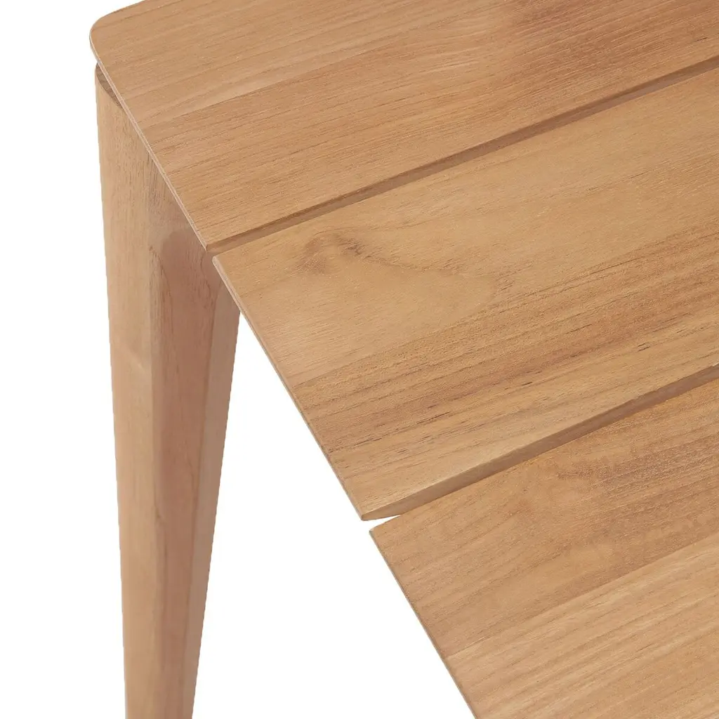 One of Ethnicraft's signature designs, this dining table rests a beveled, planked top on subtly tapered legs. It's crafted of teak, a hardwood prized as much for its beauty as for for its resistance to moisture, mildew, decay, and even termites.