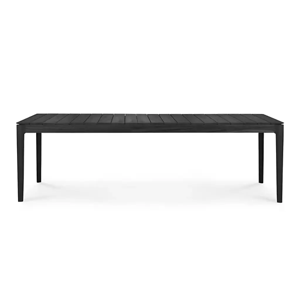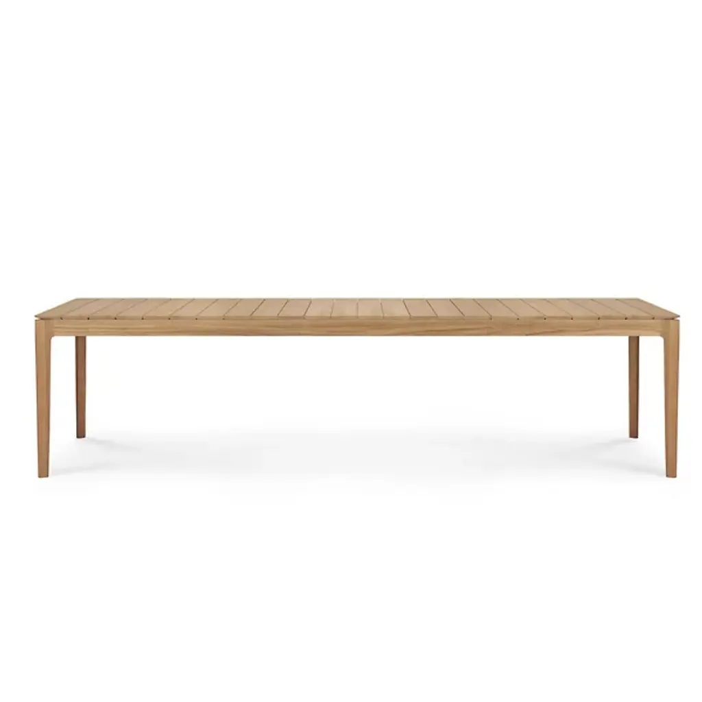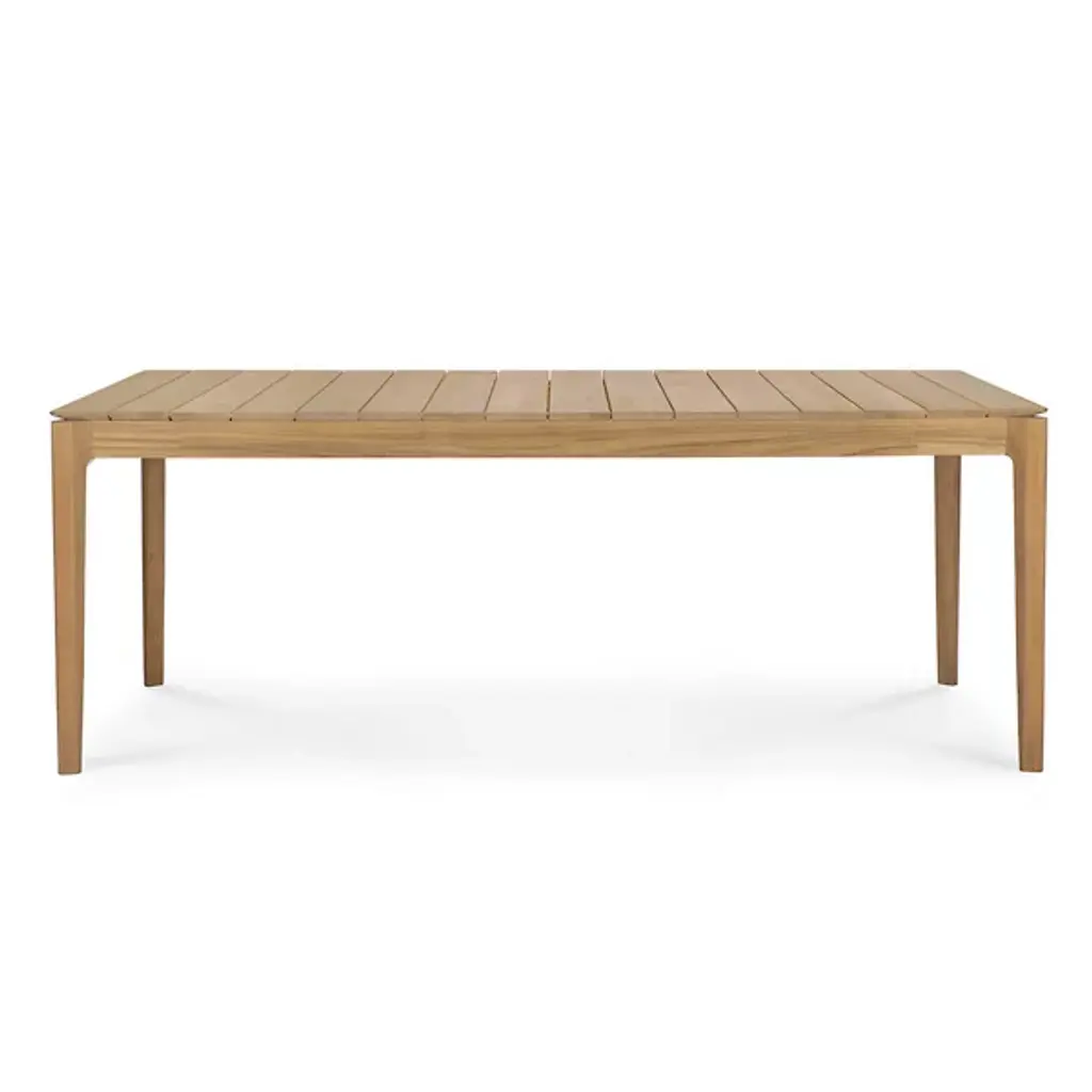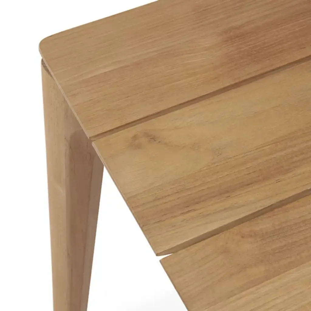 Create memories for years to come with the elegant and solid design of the Teak Bok Outdoor Dining Table from Ethnicraft. It’s a handsome piece with good looks coming from clean, refined shapes. The teak wood construction underlines its classic look personality, giving every edge a natural warmth from its textured grain. A slatted tabletop charms in its repeating shapes and proves ideal for wicking water. Teak wood’s legendary ruggedness makes this piece effortless to maintain. It weathers extreme cold and heat with ease. With high natural oils, the teak wood proves water-resistant.