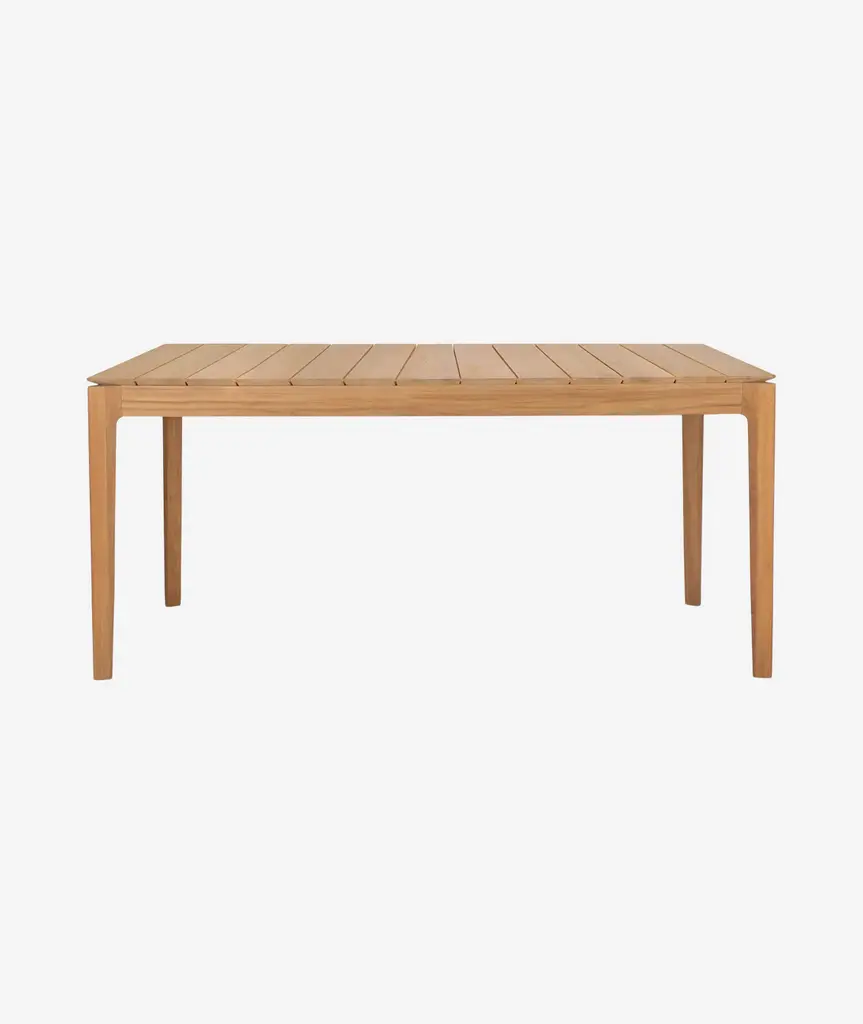 Reminiscent of a goat's curved horns, the Bok collection combines sculptural elegance and contemporary crafting into a graceful and airy form. Just like its matching chair, the Bok dining table is another signature design. Its airy shape yet rock-solid construction make this piece a timeless and remarkable design to enjoy for all the years to come, while the adapted grooved tabletop in solid teak makes outdoor life a simple pleasure.