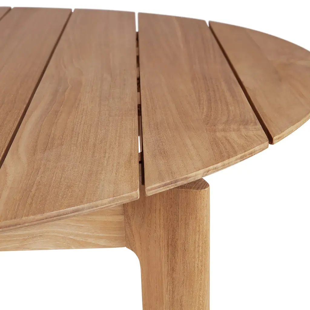 Reminiscent of a goat's curved horns, the Bok collection combines sculptural elegance and contemporary crafting into a graceful and airy form. Just like its matching chair, the Bok dining table is another signature design. Its airy shape yet rock-solid construction make this piece a timeless and remarkable design to enjoy for all the years to come, while the adapted grooved tabletop in solid teak makes outdoor life a simple pleasure.