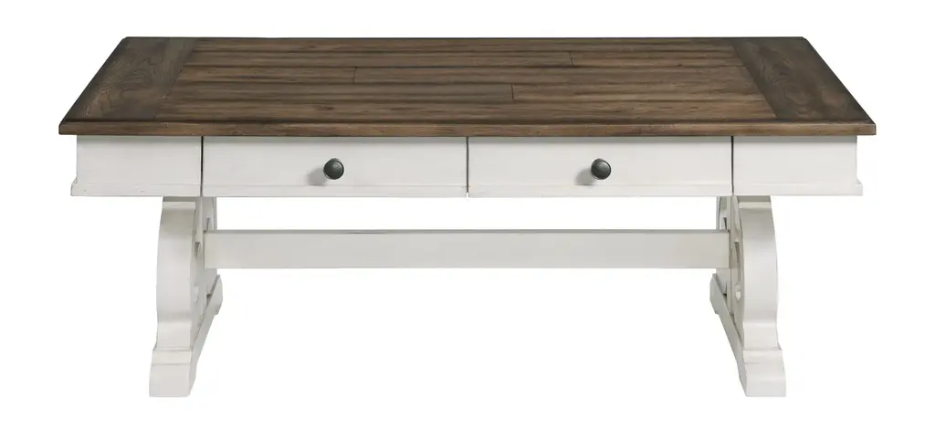 Handsome, practical and functional are the name of the game with this dining table. The two-tone textural finish of an antique white base and weather oak top gives a plank effect that doubles its charm. It also boasts six drawers - three on each side - for napkins, placemats and other items.