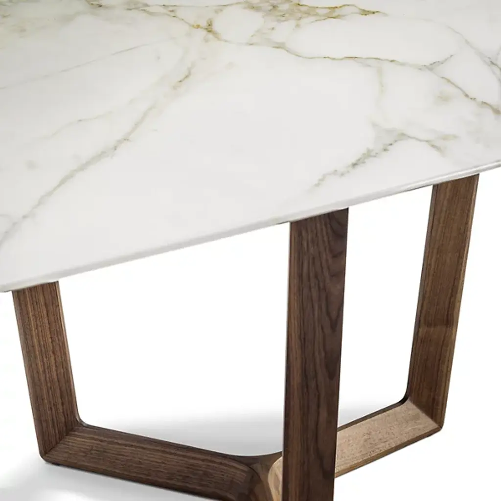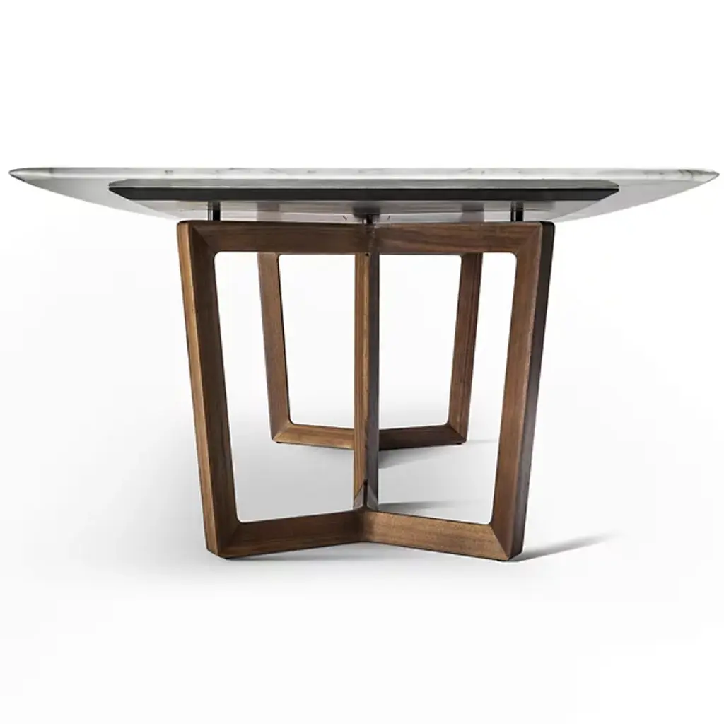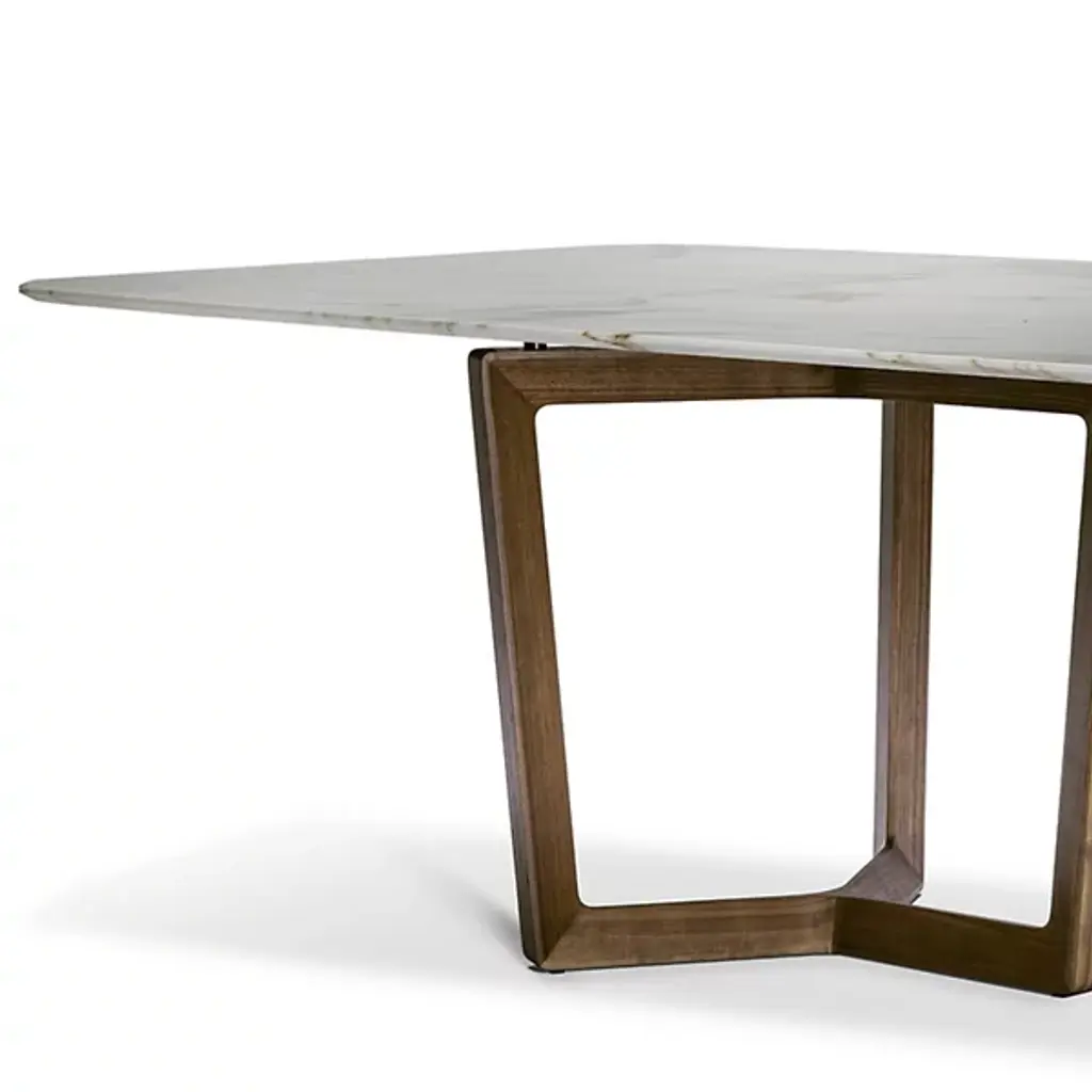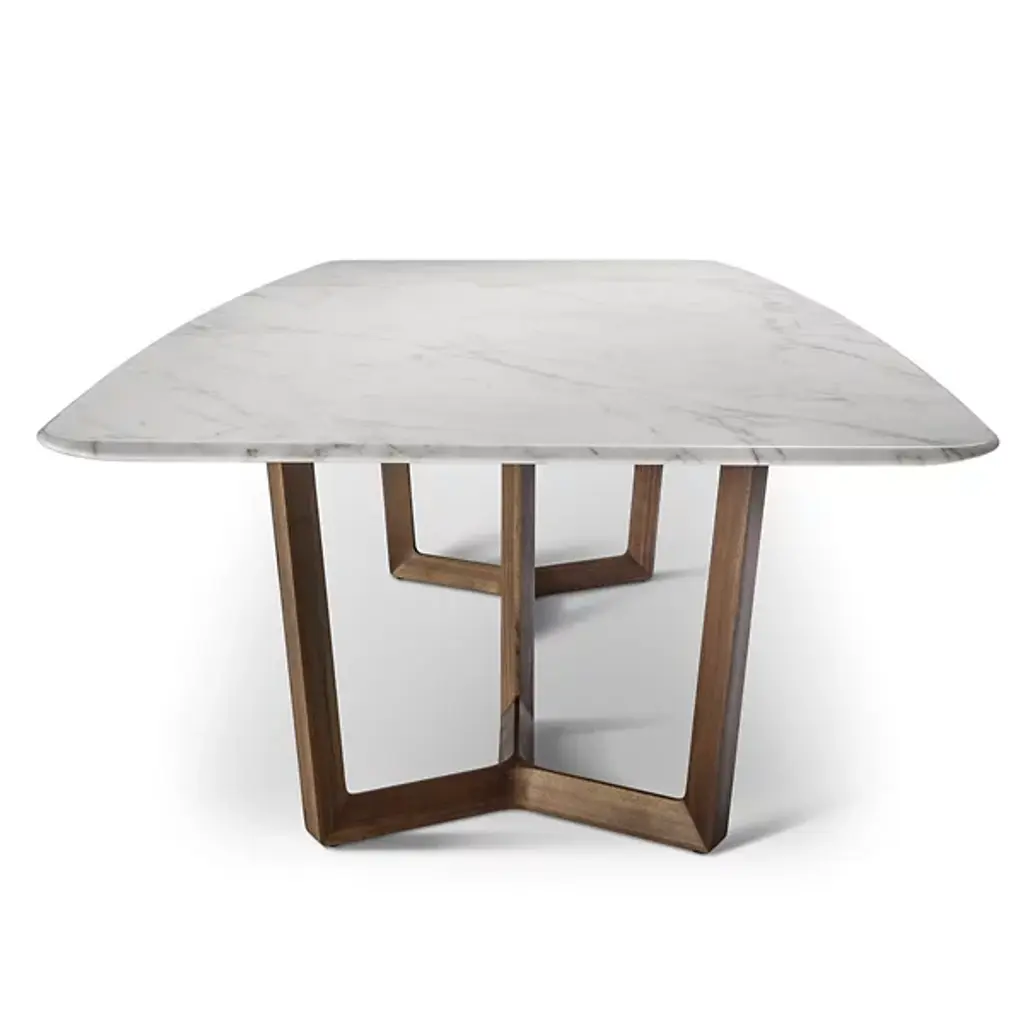 The Bolero Dining Table from Poltrona Frau lets you dine in contemporary style. This dining table was expertly crafted in 2013 by Roberto Lazzeroni, who finds the middle ground between statement-making and intentional discretion. This beautiful table features a streamlined, wooden tabletop that extends beyond the width of the sturdy wood legs, giving this piece its character. The legs of your table are geometrically shaped with open frameworks which showcase elegant silhouettes. Bolero’s flat surface facilitates the placement of your plates and cocktail glasses.