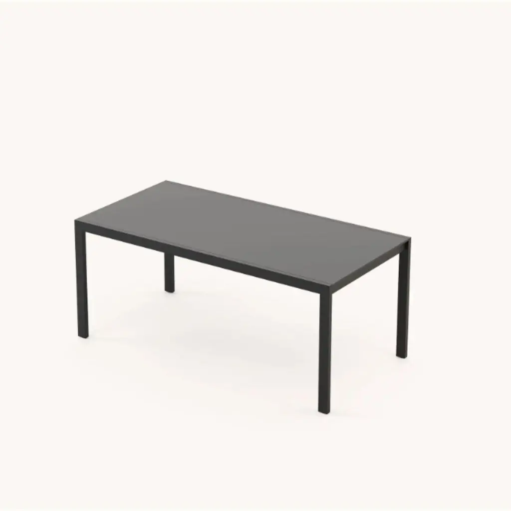 Bondi dining table by DomkapaMaterials: black texturized steel, black lacquered.Dimensions: W 180 x D 90 x H 78 cm.Also available in different materials. Gather your friends and family and celebrate summer with comfort and style with Bondi Dining Table. This minimalistic design with a black texturized steel structure is able to look stunning in every style and every outdoor.The purposeful Bondi Dining Table is available in two sizes to fit your good taste, bringing functionality to your garden.Domkapa holds a tremendous passion for detailed stitching, presenting several similarities to the haute-couture philosophy focused on the value of a “made by hand”. Based in Portugal, Domkapa was founded in 2009 as a Private Label. The long and fruitful path, full of experience and achievements inspired the brand’s new identity and independence, in 2017.Domkapa challenges its team to create the perfect daily meeting between design and comfort in each piece of the brand’s collections. Our design team works side by side with the production, and this organic synergy allows the creation of innovative designs.