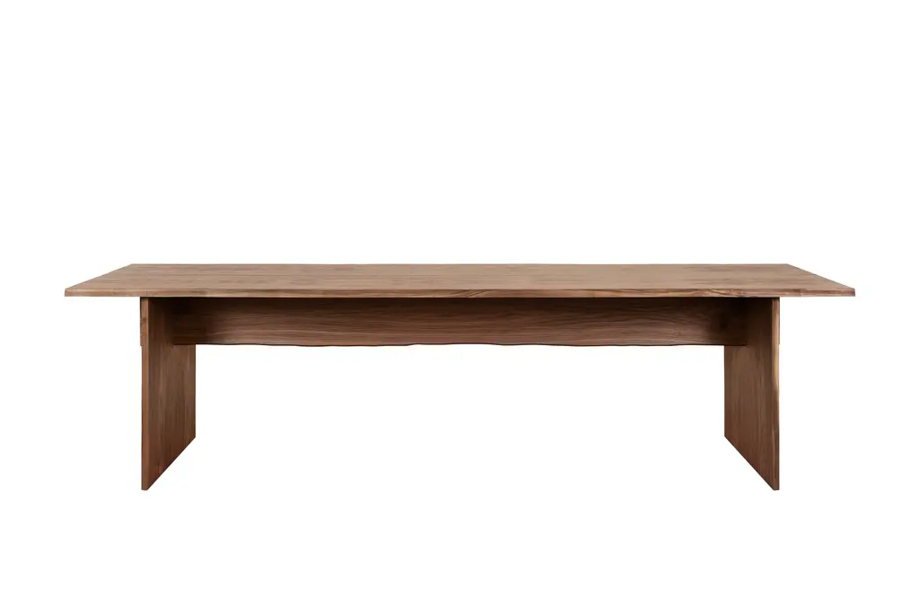 The Bookmatch Table by Philippe Malouin channels the natural beauty of freshly sawn timber. It celebrates craftsmanship, and yet is a design for modern manufacture and contemporary living. Featuring two perfectly mirrored wood veneer boards with edges engineered to give a waney (untrimmed) effect and a construction that locks with two wooden wedges, the Bookmatch Table is a perfectly considered homage to traditional carpentry skills. Visually hefty, although actually light, and seemingly raw and crafted, but in reality highly engineered, the Bookmatch Table is a sophisticated piece of furniture for design devotees.