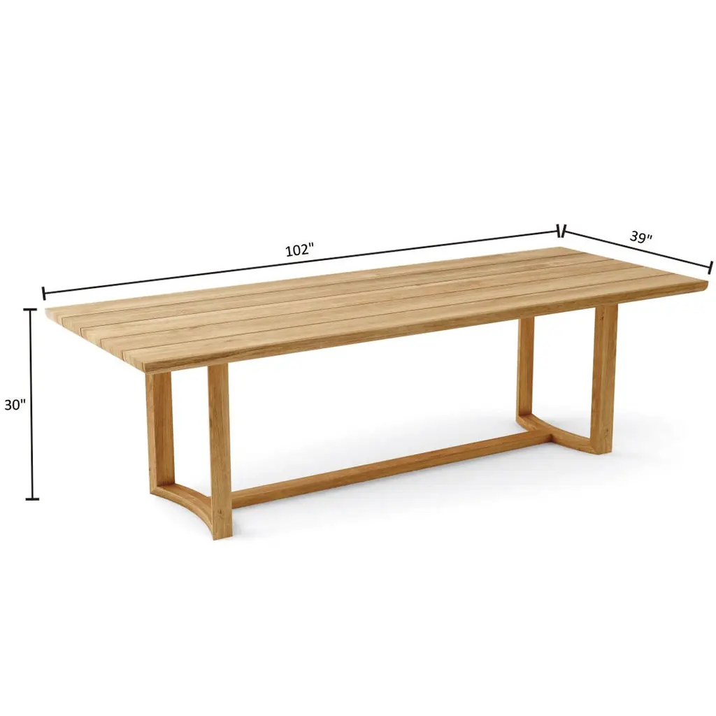 Part of the Borella Collection, the Borella Dining Table is a sturdy and well-built outdoor dining table for the home or yard. Made completely from premium grade unfinished teak and featuring large wide slats, the table fits six Borella Dining Armchairs, making it the perfect table for an outdoor lunch or dinner with family and friends. Be sure to add other pieces from the collection such as the Borella Dining Armchair, Lounge Armchair, Sofa, Coffee Table, and Sun Lounger.