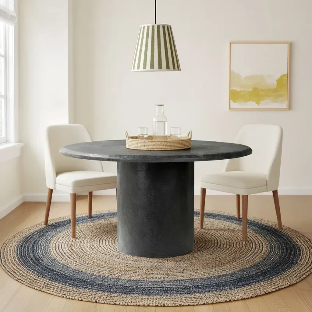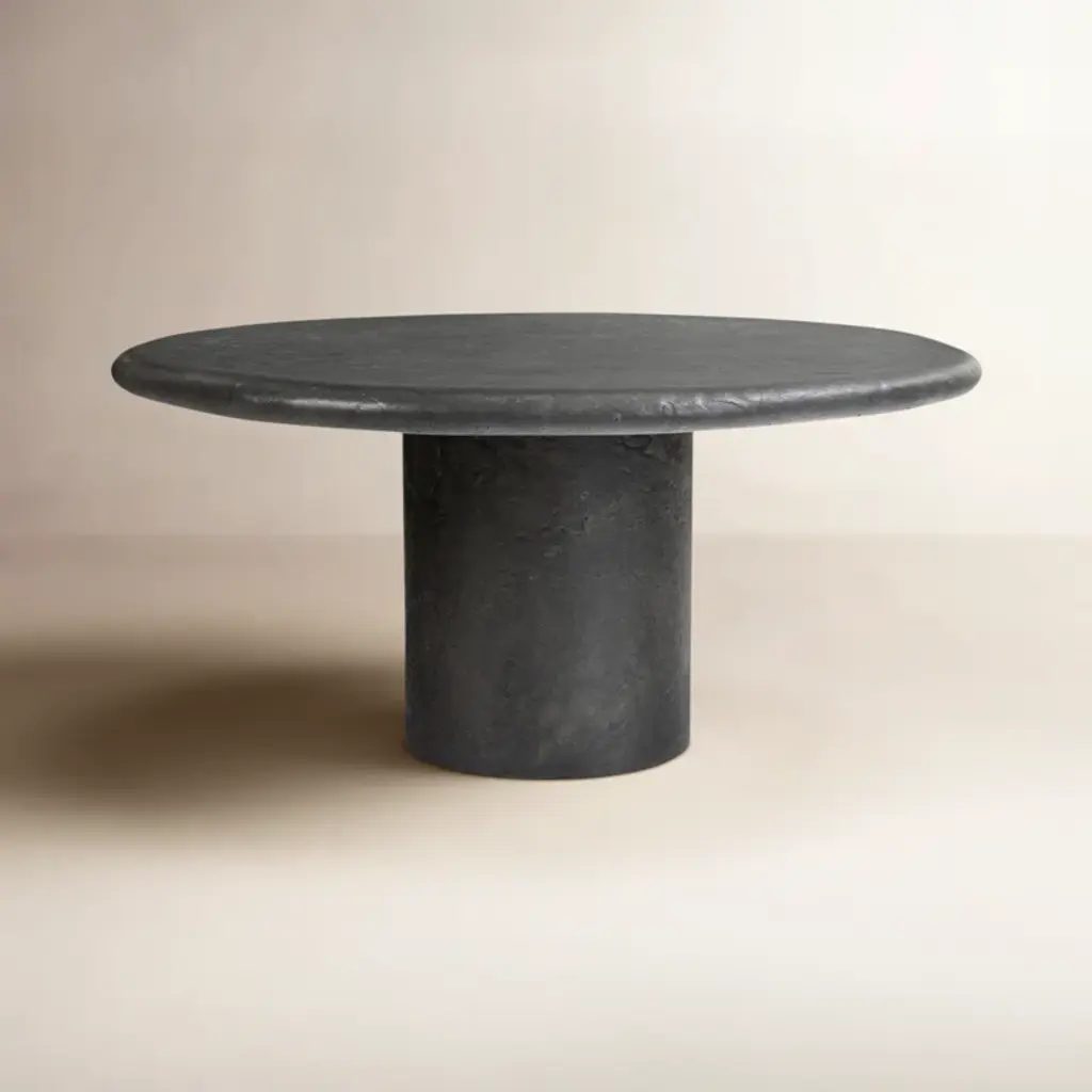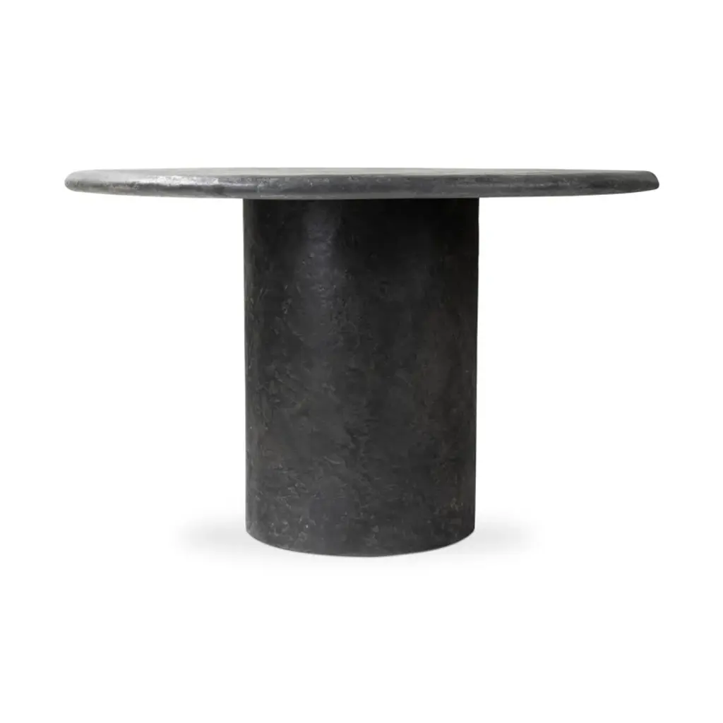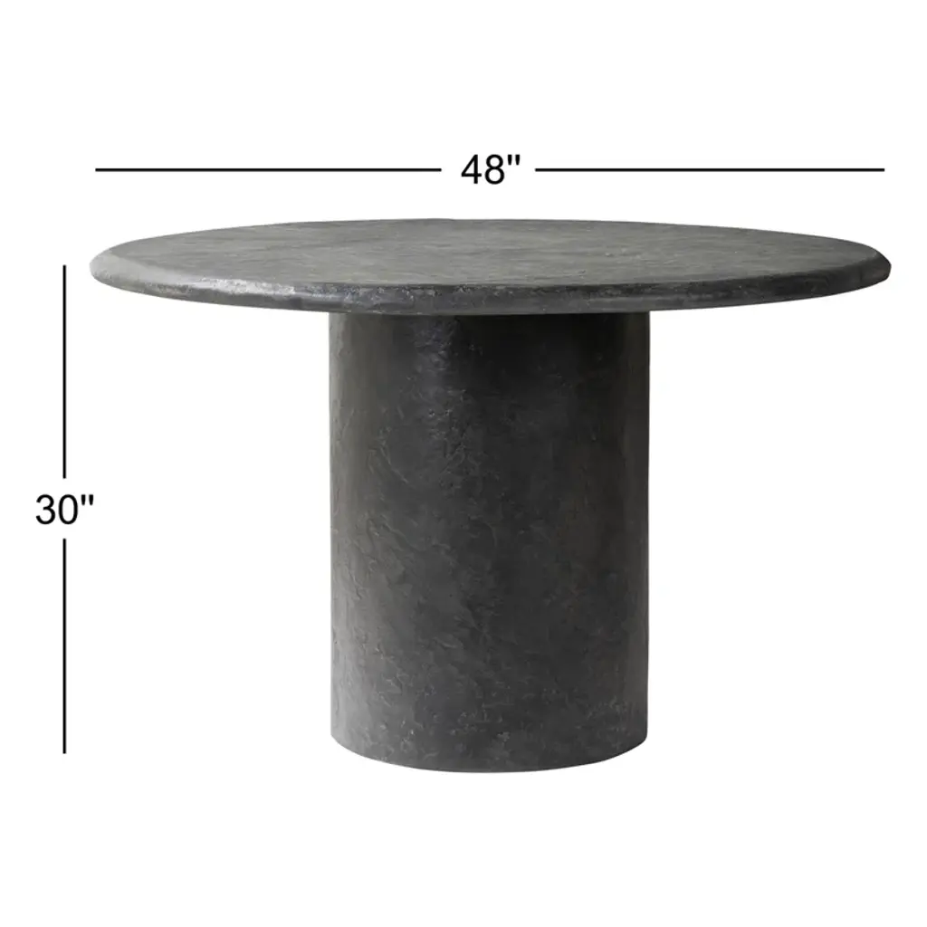 Made from textured black concrete, for a sculptural showstopper. A cylinder pedestal base and thick tabletop keep this design sleek and simple. At 48 inches, it's perfect for a bistro or hall table.