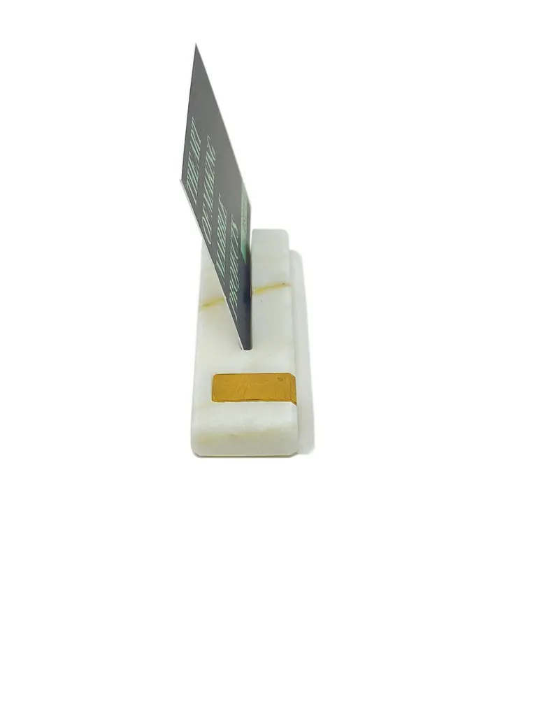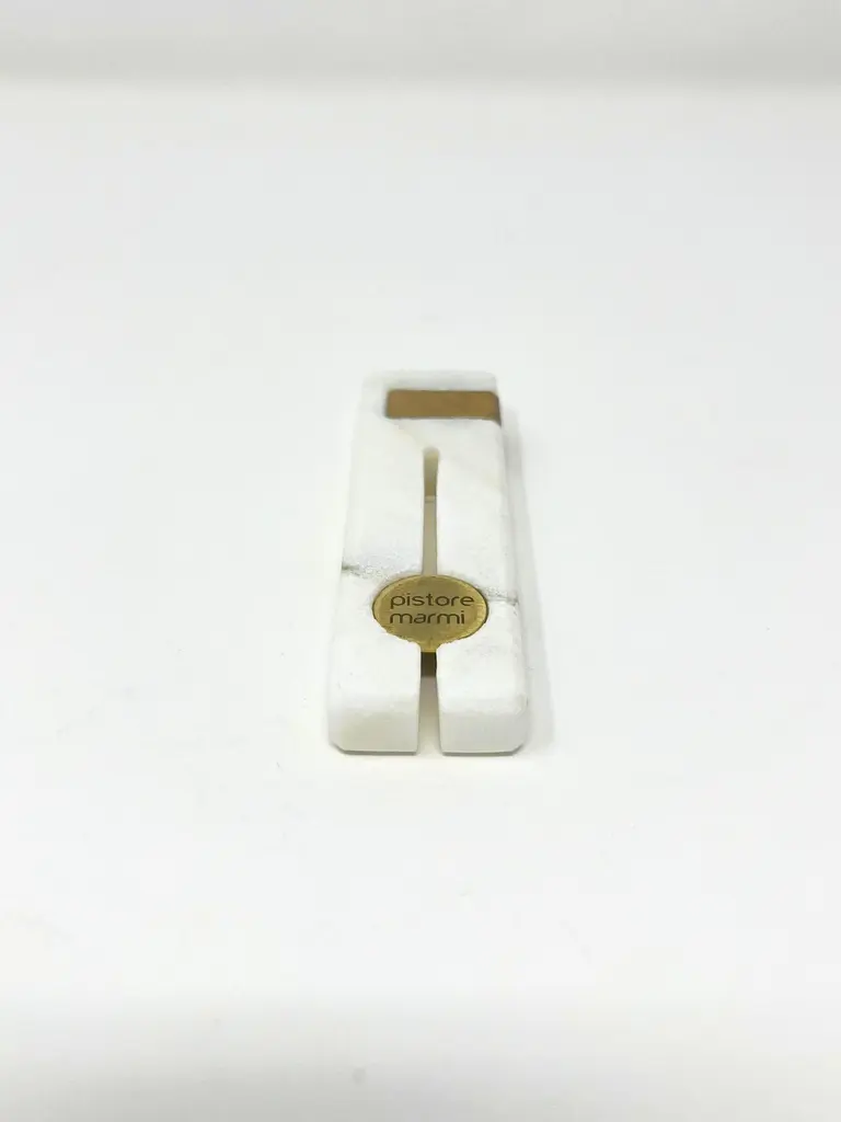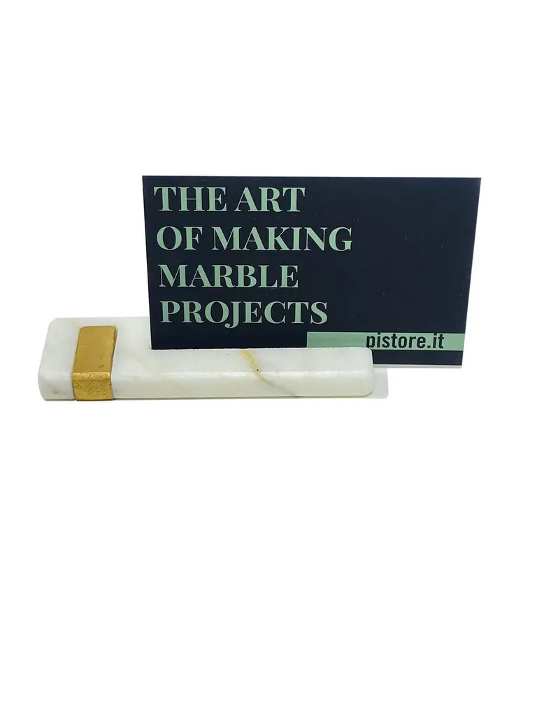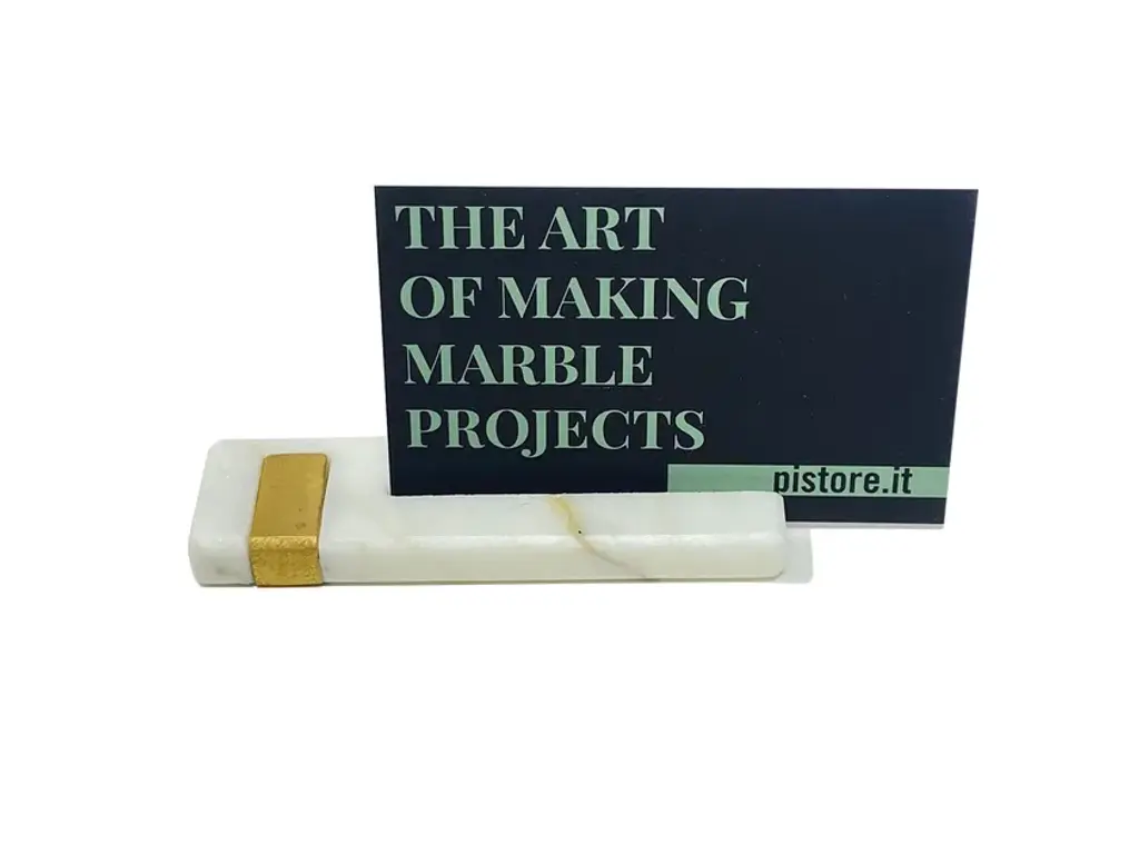 The “Brass” place holders, entirely made of Calacatta Oro marble, are exclusive place holders holders embellished with a brass tab that runs along the object from one end to the other, giving it a further touch of refined style. The Brass place holders are part of the new “Brass” Tablewear & Desk Accessories collection, created through the reuse of different types of natural stones. Through these objects we want to offer our customers objects of sustainable design, to give a touch of elegance and refinement to their dining room or office. Entirely made with residual materials from other projects, the Brass collection, created in collaboration with the designer Cristina Romanello, is made up of exclusive trays, underplates, chopping boards, cutlery trays, coasters, place cards and pen holders designed to give more class and elegance to your table or at your office. (Variations in color or slight imperfections are the result of the craftsmanship of this article and are not to be considered defects.)