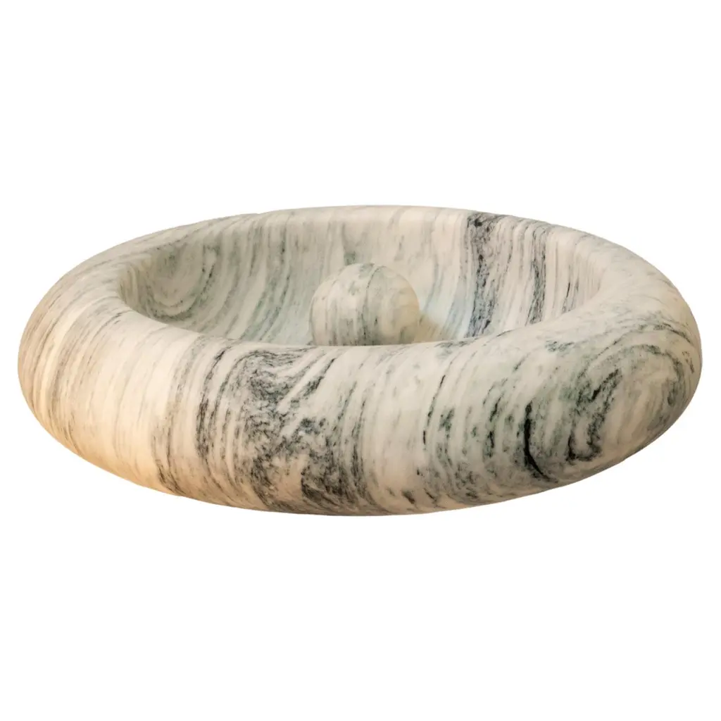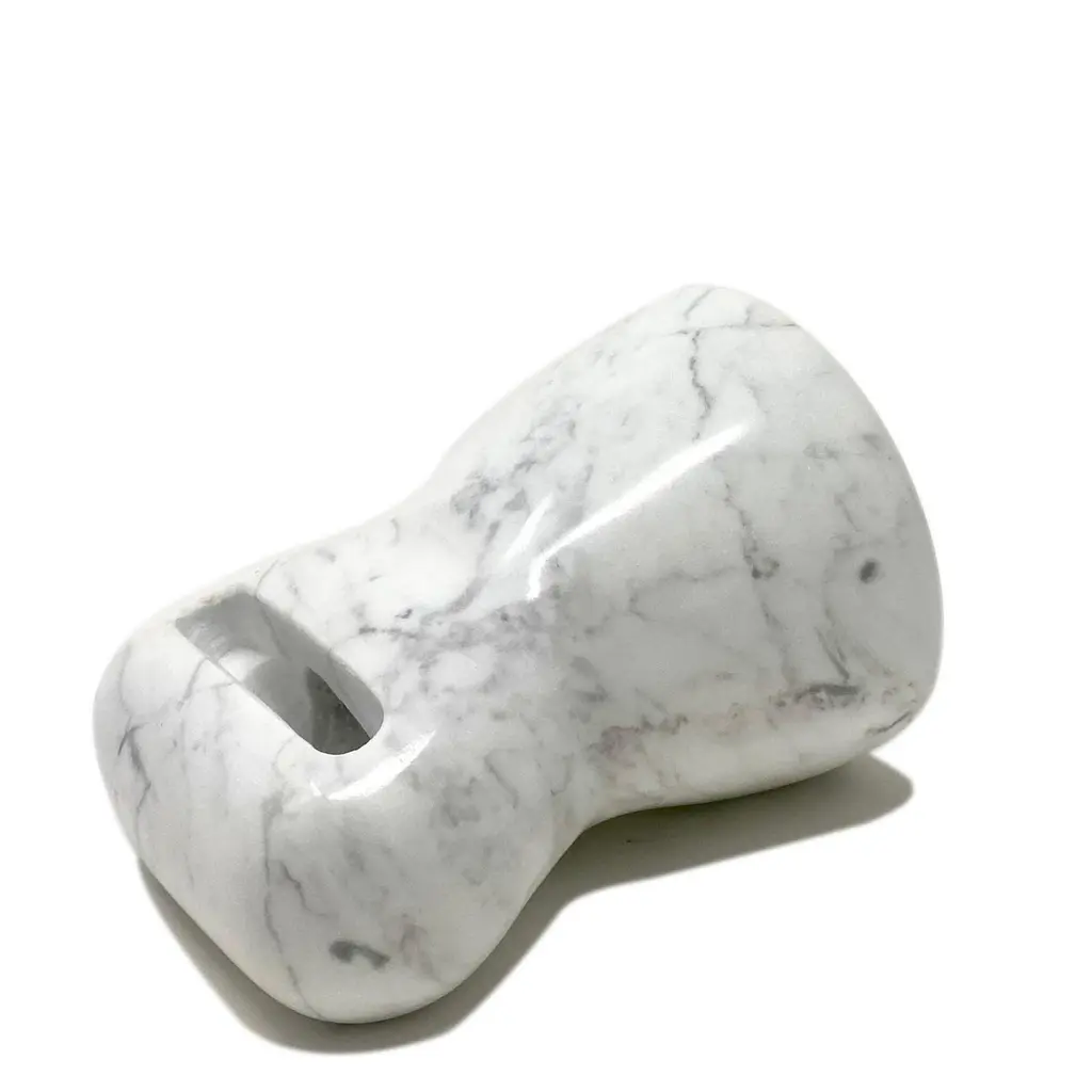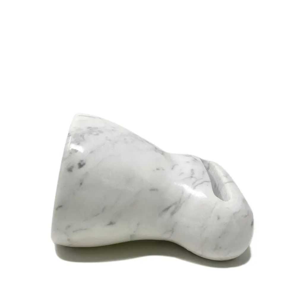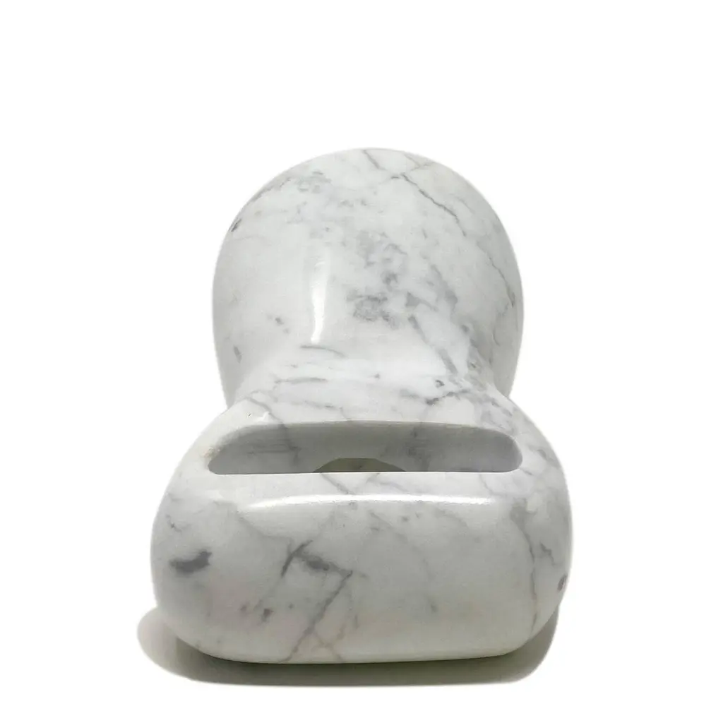 The Brass amplifier, entirely made of Calacatta Oro marble, is an exclusive and elegant design object that acts as a passive amplifier for your smartphone. To use this object, just turn on the music on your smartphone and place it in the appropriate support and enjoy an amplified volume thanks to the physical principle of acoustic waveguides, without any electronic aid. The Brass amplifier is part of the new ""Brass"" Tablewear & Desk Accessories collection, created through the reuse of different types of natural stones. Through these objects we want to offer our customers objects of sustainable design, to give a touch of elegance and refinement to their dining room or office. Entirely made with residual materials from other projects, the Brass collection, created in collaboration with the designer Cristina Romanello, is made up of exclusive trays, placemats, cutting boards, cutlery trays, coasters, place cards and pen holders designed to give more class and elegance to your table or at your office.(Variations in color or slight imperfections are the result of the craftsmanship of this article and are not to be considered defects)