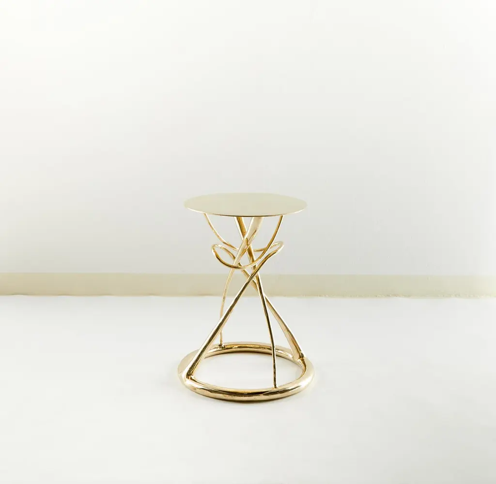 Brass dining table, Gordian Node, MisayaDimensions: W 60 x L 60 x H 70 cmHand-sculpted brass table.Sold without the glass top.