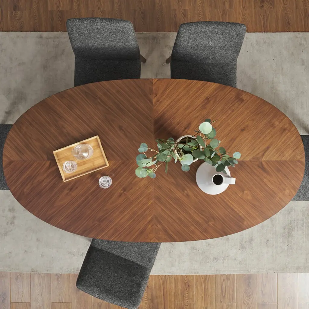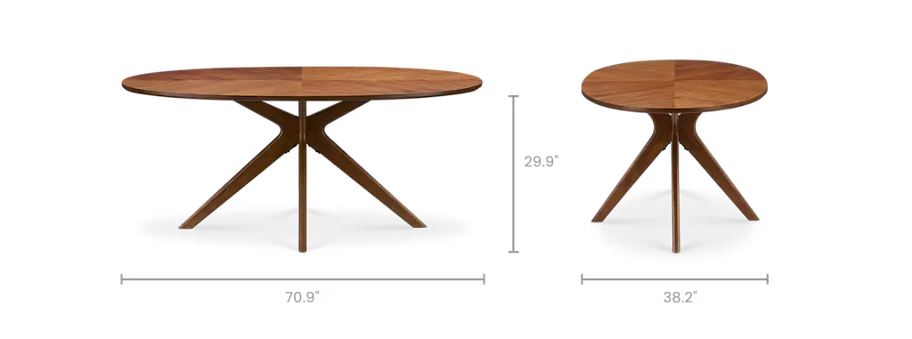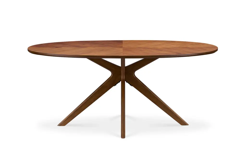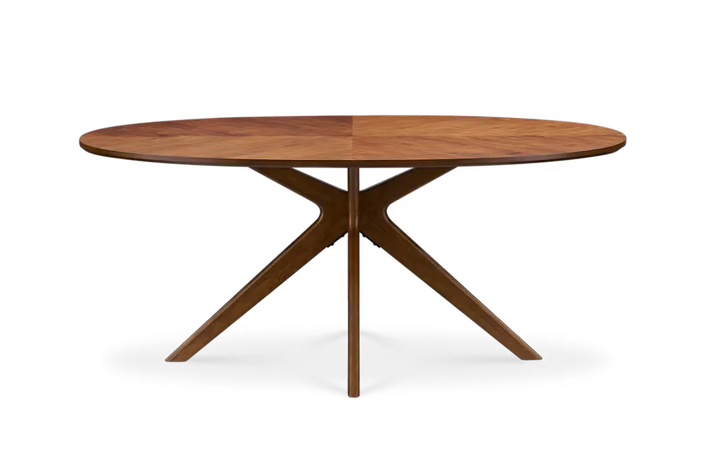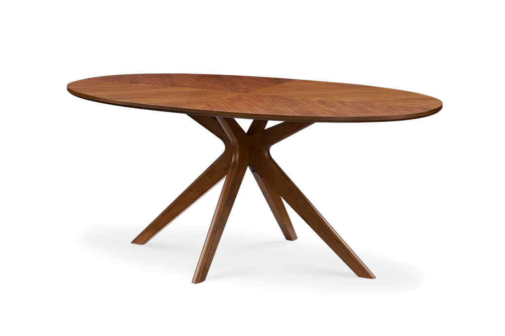 Host and dine in glamorous mid-century modern style with Brighton's distinctive sculptural presence, with a rich oval walnut tabletop sit atop solid wood legs.
