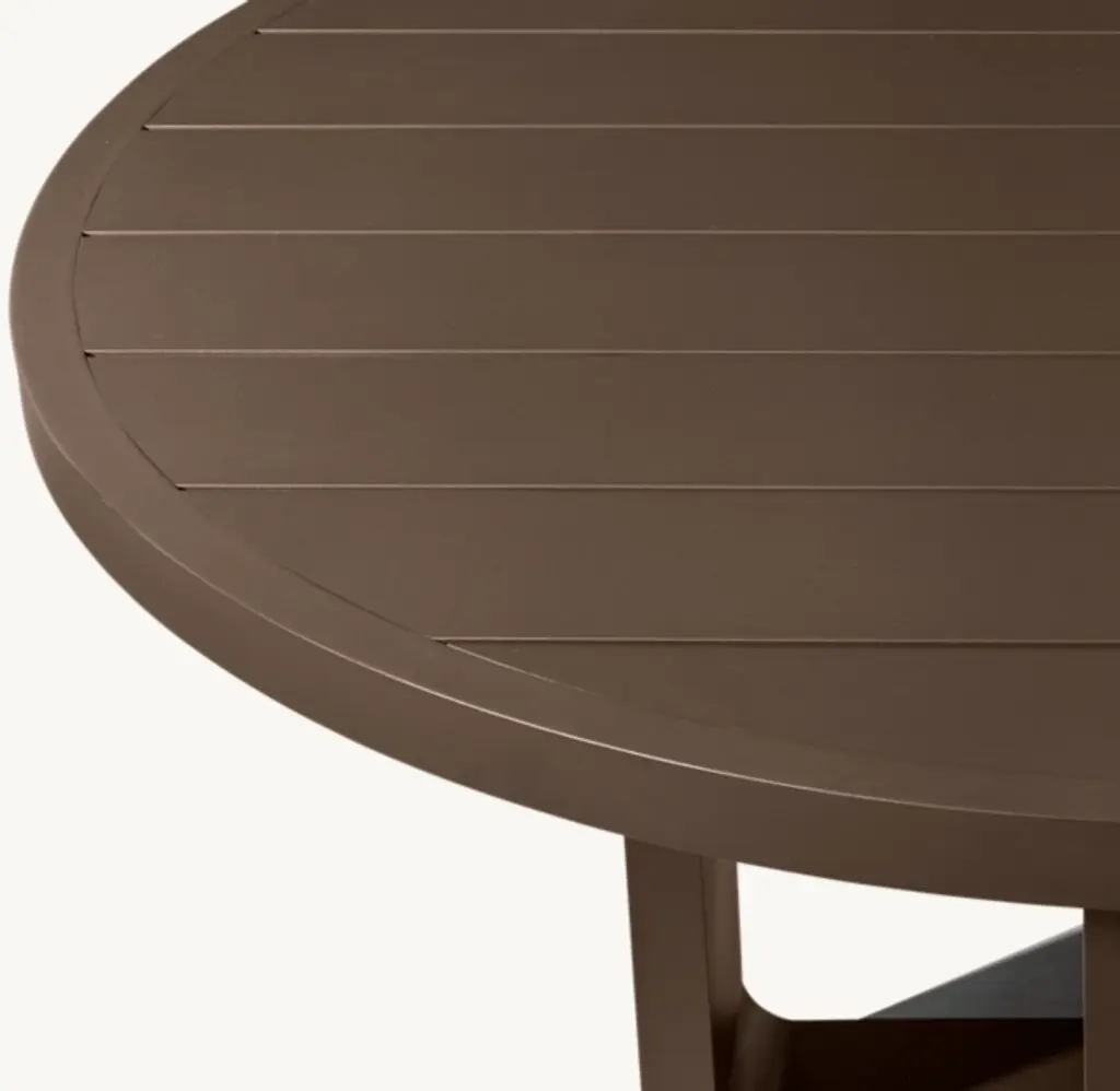 Australian designers Harrison and Nicholas Condos bring a contemporary perspective to midcentury simplicity with Bronte. Masterfully constructed of all-weather aluminum, the tabletop's rounded form is echoed by bold, curved legs. Guaranteed for life.ALSO AVAILABLE IN TEAKSHOP THE ENTIRE COLLECTION