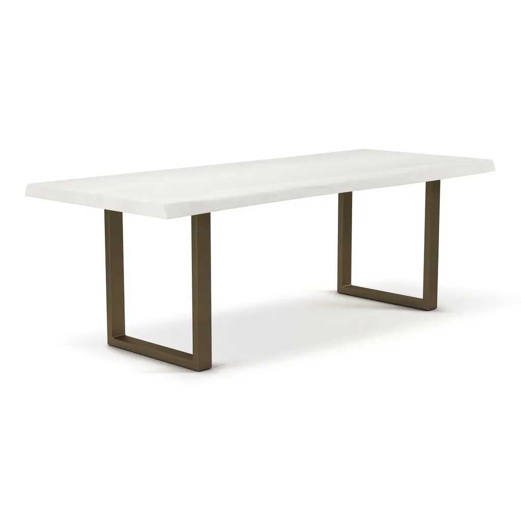 The Brooks Dining Table - U Base from Urbia brings modern style and natural beauty to any home. Handcrafted from solid acacia and featuring a unique live edge, this rustic centerpiece is supported by 2 sleek U-shaped legs of aluminum, creating a beautiful industrial contrast. The perfect piece to transform any gathering into a memorable event. Highlights