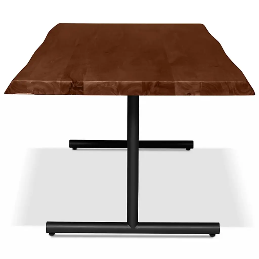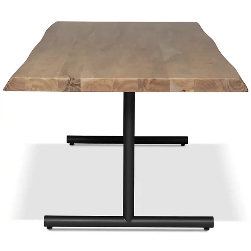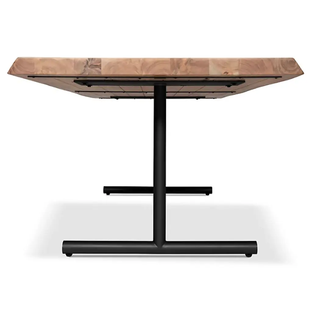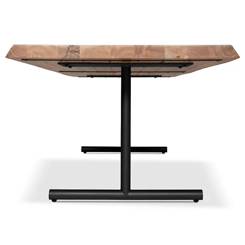 Elevate your dining experience with Brooks T Base Dining Table by Urbia. Combining a marriage of industrial rustic furniture with the sleekness of a contemporary rustic table, this piece is a standout in any decor setting. Constructed from solid Acacia wood, this table exhibits the warmth and charm indicative of modern farmhouse tables. The striking balance of materials makes this dining table flawlessly blend the old world with the new. This industrial chic dining table is perfect for dining rooms that seek a mixture of modern industrial style tables and classic rustic elements.