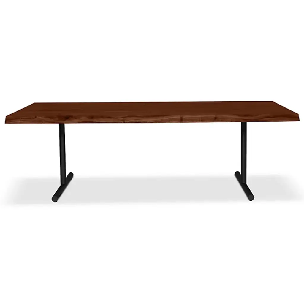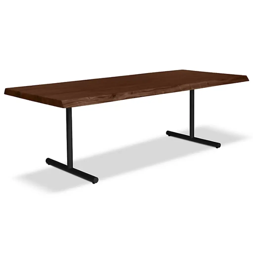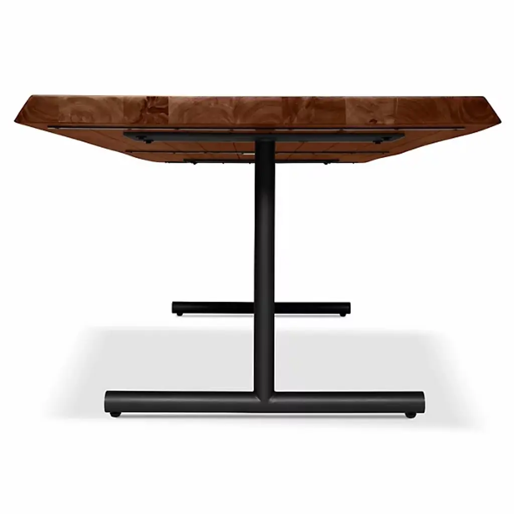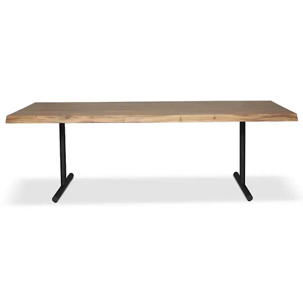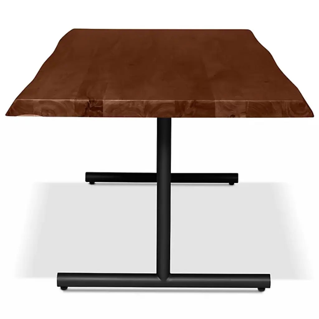 Elevate your dining experience with Brooks T Base Dining Table by Urbia. Combining a marriage of industrial rustic furniture with the sleekness of a contemporary rustic table, this piece is a standout in any decor setting. Constructed from solid Acacia wood, this table exhibits the warmth and charm indicative of modern farmhouse tables. The striking balance of materials makes this dining table flawlessly blend the old world with the new. This industrial chic dining table is perfect for dining rooms that seek a mixture of modern industrial style tables and classic rustic elements.