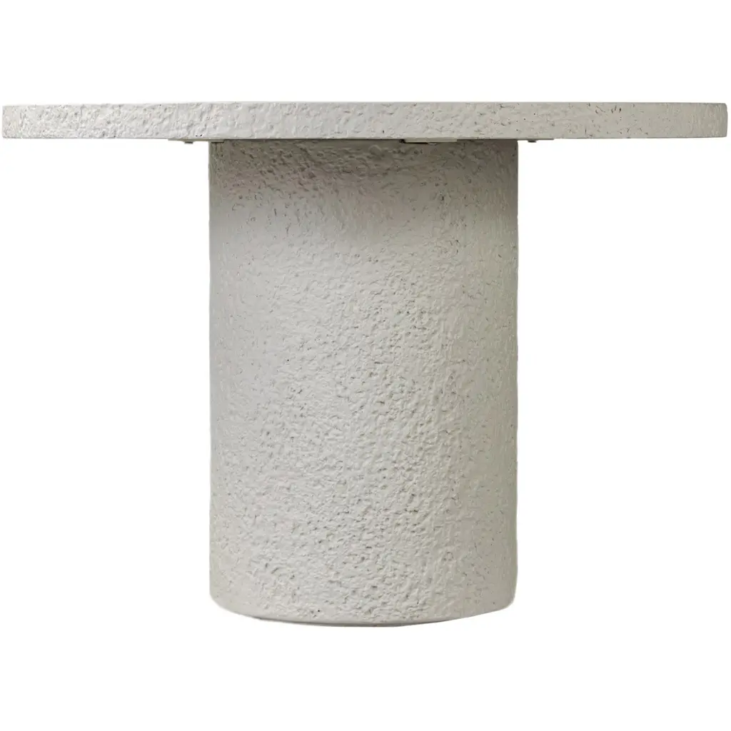 The Brookstead Outdoor Round Dining Table brings a touch of industrialism to your outdoor space. This elegantly tapered dining table is crafted from concrete, featuring raw edging that adds texture and novelty to its design. Its smooth, clean surface makes it a versatile addition to any patio or garden setting. To ensure longevity, it is recommended to cover or store the table indoors during inclement weather and when not in use.