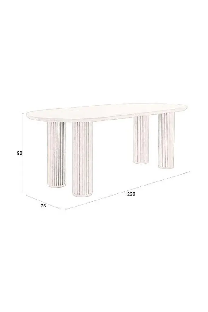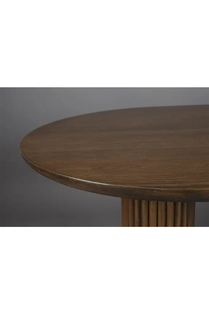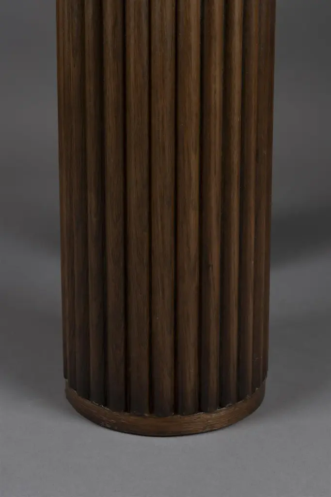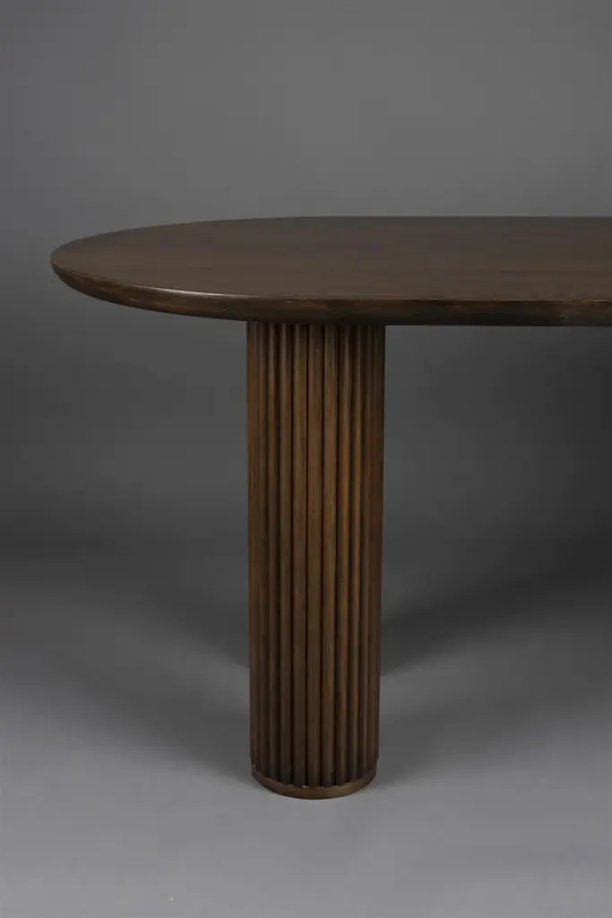Sometimes you don't need much to take the ambience of a room to the next level. The thoughtful design of the Dutchbone Dean adds character to the entire dining room. The oval tabletop with rounded finish at the bottom rests on four wide table legs that are reminiscent of sturdy pillars. Each leg is finished with a ribbed pattern, which creates a playful effect. The deep walnut colour completes the look and, combined with the rounded shapes, provides an extra warm feel. This quickly turns the dining area into a cosy space — a place to warm your soul.