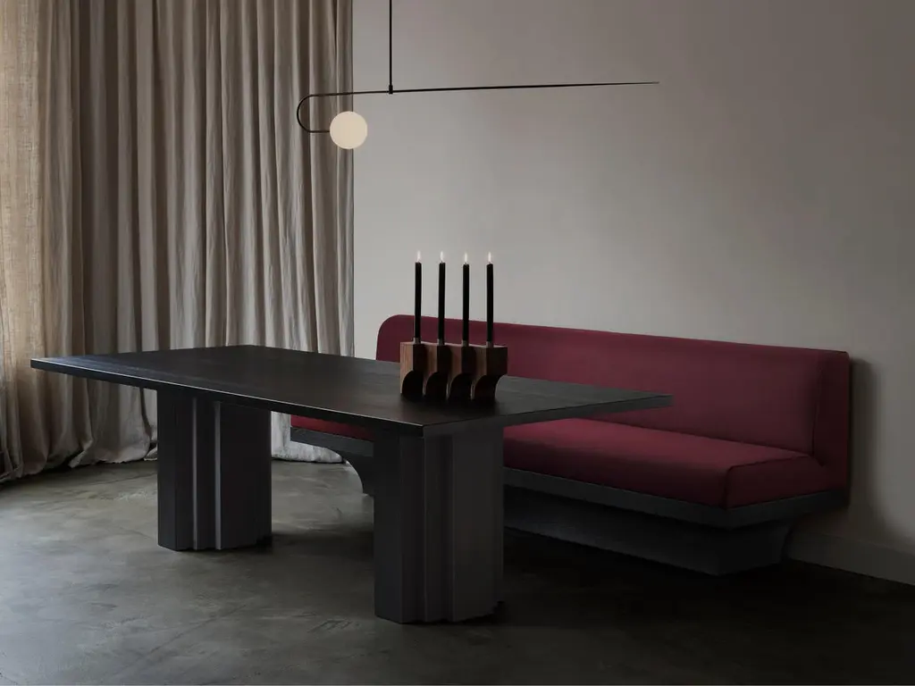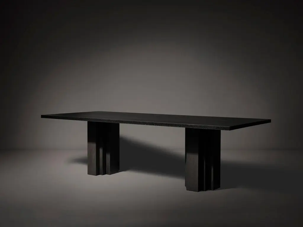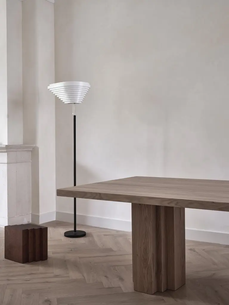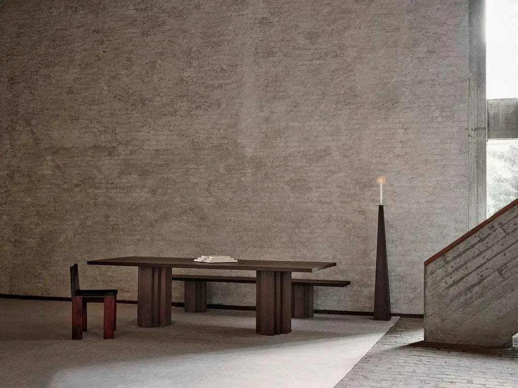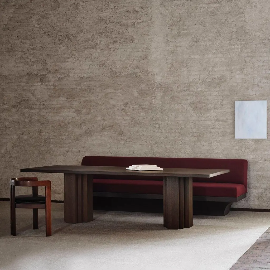 Brut 220 European Light Oak Rectangular Dining Table by Mokko AmsterdamDimensions: D 90 x W 220 x H 75 cm. Materials: European oak.Available in different material options and dimensions. Designed by Aad Bos and crafted in the Netherlands. Please contact us.The Brut table takes cues from Brutalism and Amsterdam School architecture. A balance of raw materiality and subdued forms with geometrically expressive detailing. A matching Brut bench is available.Mokko represents a collection of interior objects designed by founder Aad Bos. The Amsterdam-based studio was established in 2017 and creates custom products for interior professionals and design enthusiasts internationally.Objects by Mokko feature a rhythm of monolithic form, created through an iteration of volumes and voids. Architectural elements are balanced, weighed and stripped from excess, until the essence of the inspiration is translated into a sculptural object that is emotionally resonant.With respect for nature and robust furniture building, each piece is made in close collaboration with local carpenters in the Netherlands from high-quality, sustainable materials. All objects are custom-made and conceived as future heirlooms; intended to be valued, used and passed down through generations.