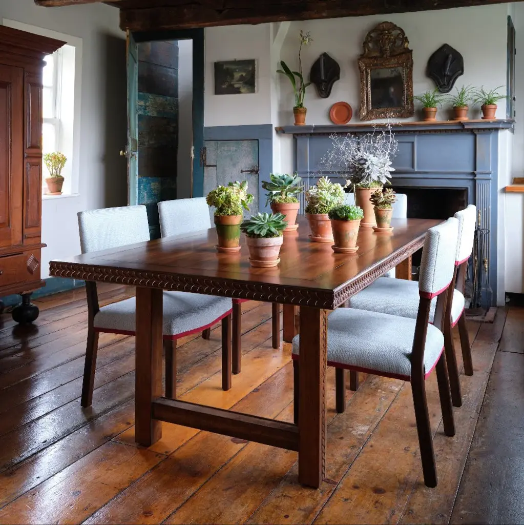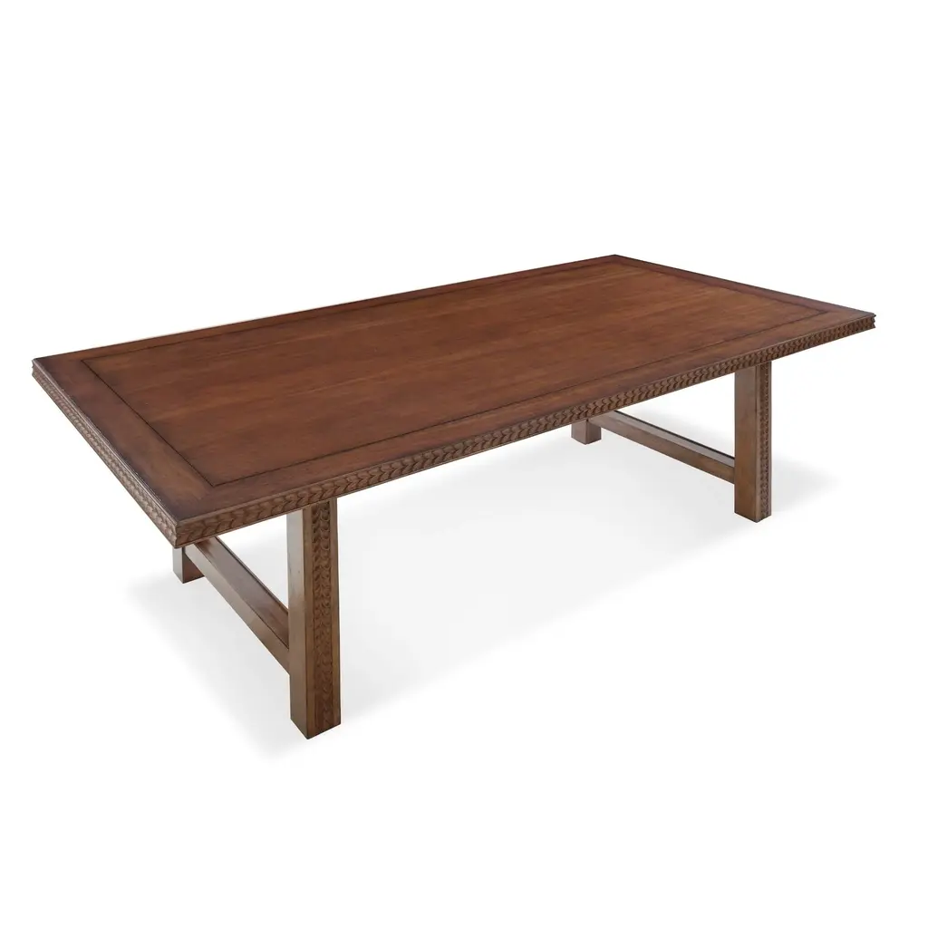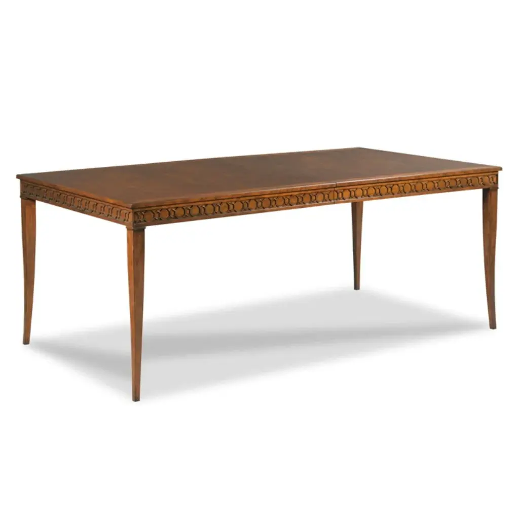 A gorgeous, early 19th century French leaf detail inspired our contemporary Holland Dining table. It’s hand-carved floral motif runs along the table top side and continues down the legs, which adds a low-key floral note to the handsome, mahogany finished whole.