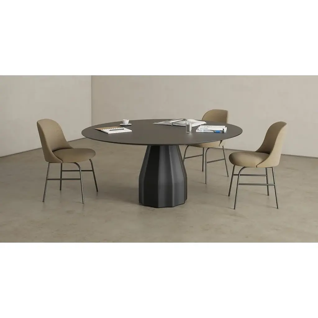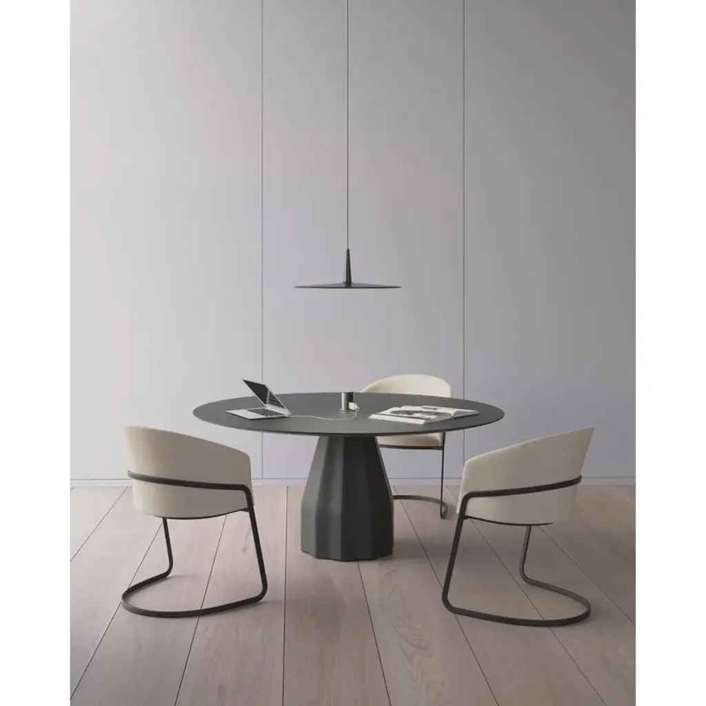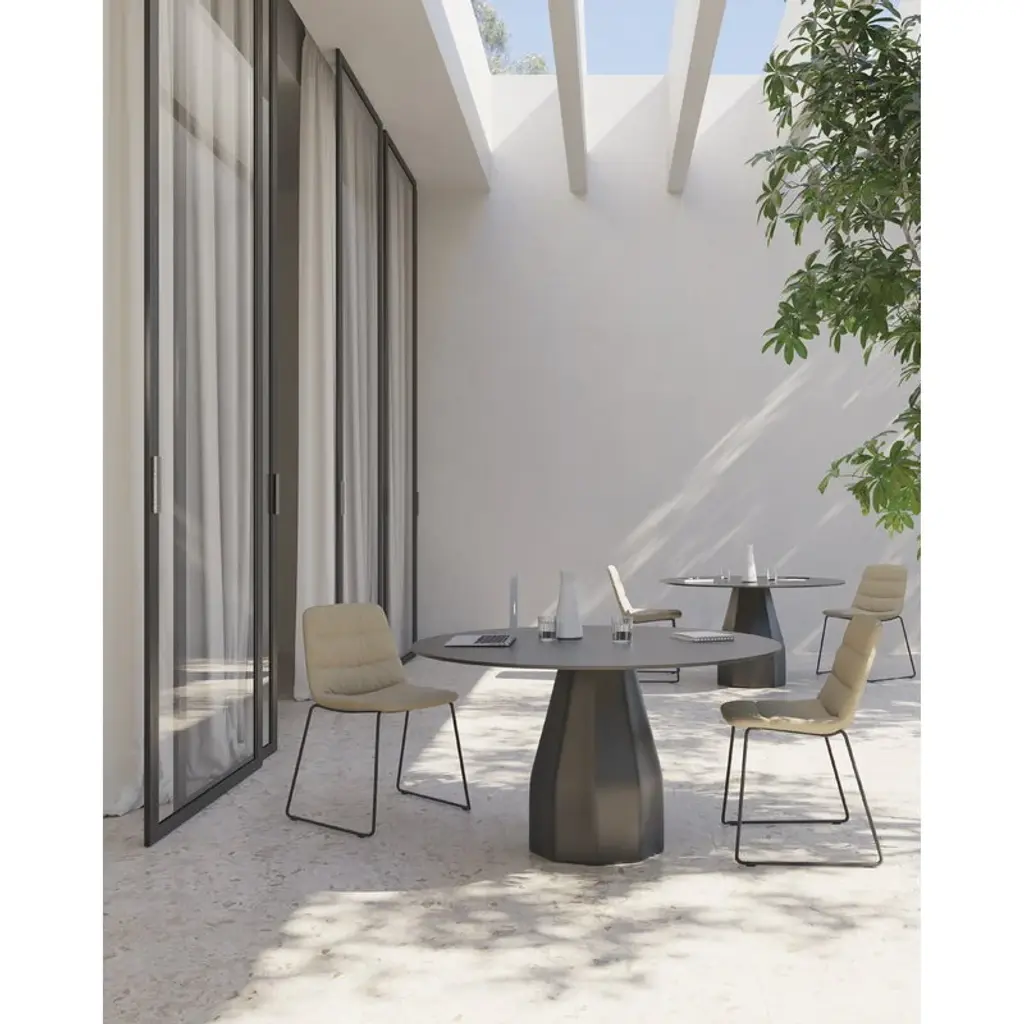 Viccarbe’s Burin table is a sculptural, distinctive piece of furniture designed by Patricia Urquiola. The most recognizable element of the Burin table is its sturdy, polygonal central base. The thin MDF tabletop balances the appearance of the bold base, making Burin a perfect dining table for many types of interiors and styles. The Burin series, released in 2011, was inspired by traditional woodcarving methods as well as Spanish design traditions.