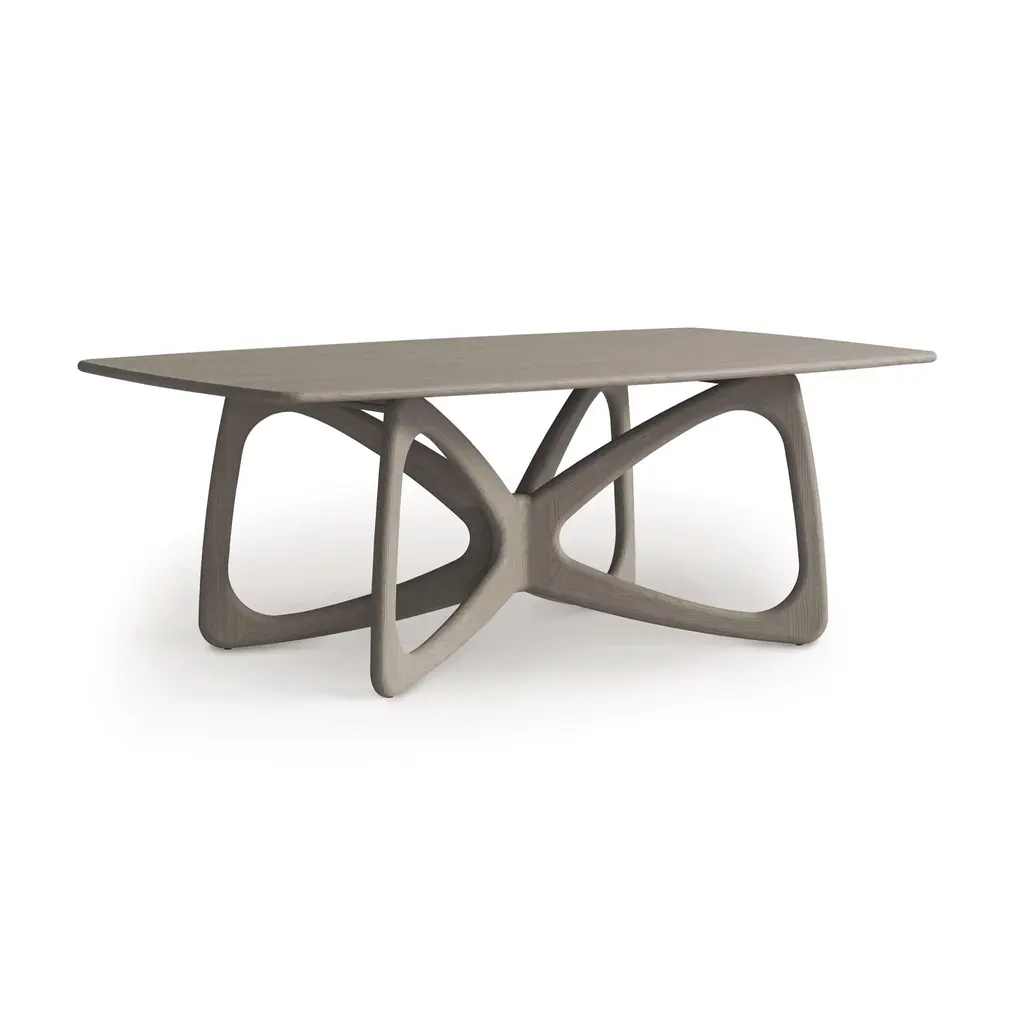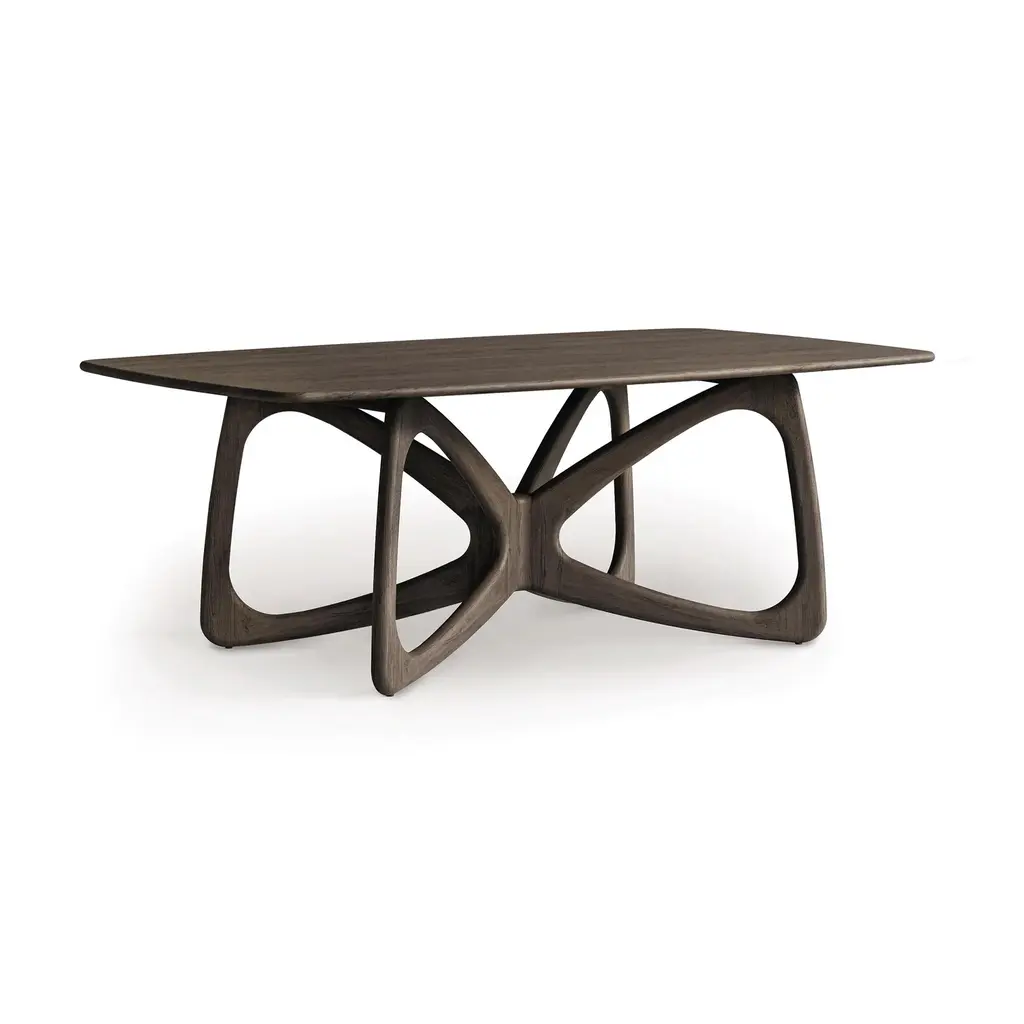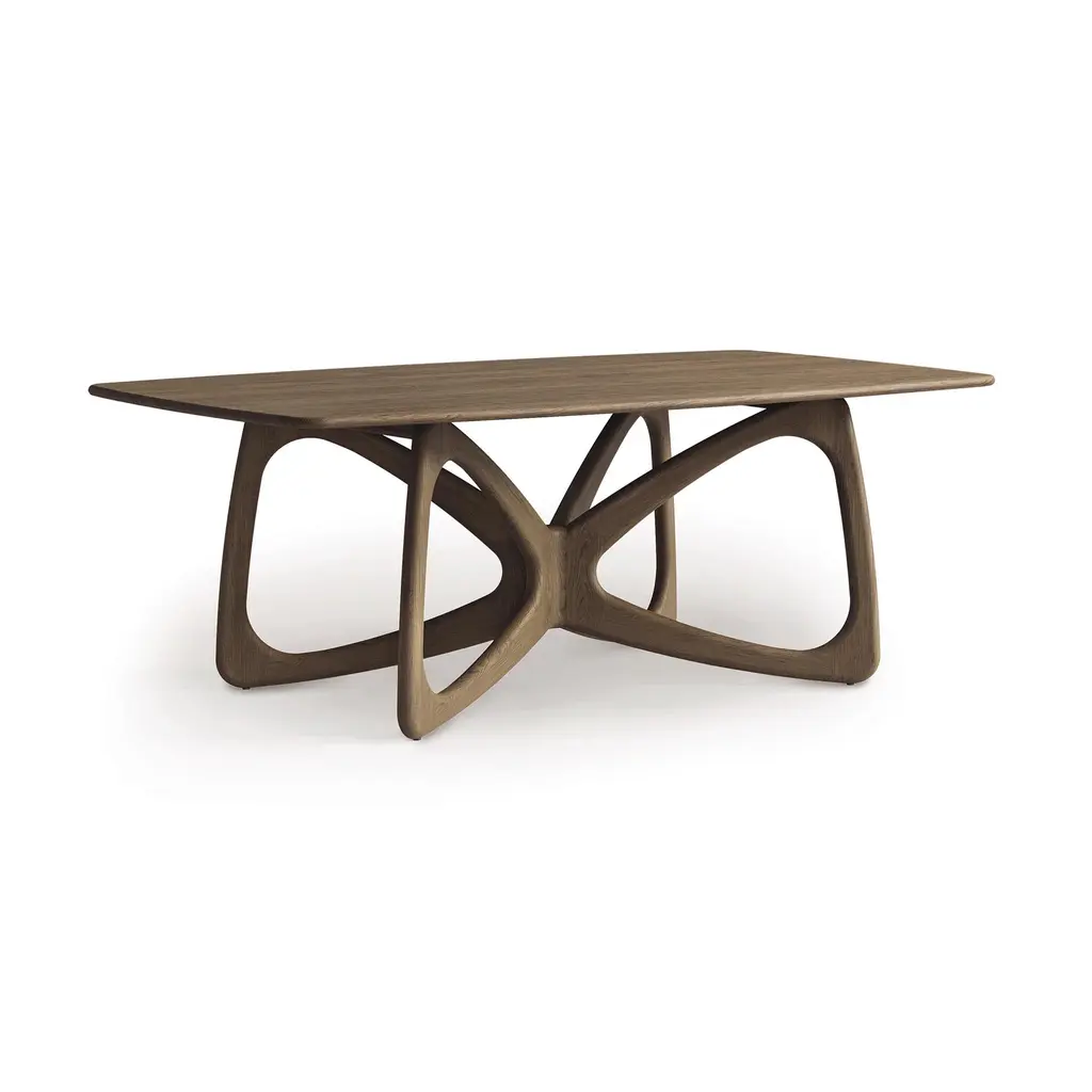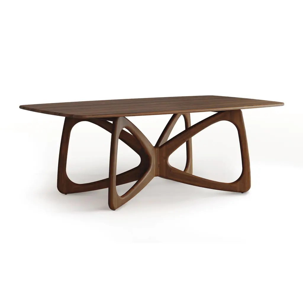 Like the unfurling wings of the elegant Monarch, our Butterfly Solid Top Dining Table by Copeland blends modern aesthetics with the beautiful intricacies of the natural world. Featuring soft rounded corners throughout, this solid top table in made-to-order in sustainably sourced North American hardwoods, that not only offer a striking design, but also offer unmatched durability. Add this instant conversation starter to your home and enjoy the liveliness that it brings to all of your gatherings. Base price represents 42"W x 72"L table in natural oakShown in 42"W x 72"L table in natural walnutMatching furniture available in our Butterfly Furniture Collection