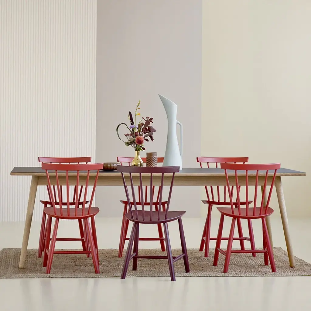 The table frame is made of solid wood - the table tops are either in solid laqcuered beech or black linoleum with beech edging. Solid wood is a 100% natural material, which gives natural variations between the planks and results in this table appearing completely individual - no two tables are alike. The individual planks in the table top are carefully selected and sorted so that color and veining harmonazi. In the individual piece of wood, there will naturally be color or texture variations, but the selection is made based on the desire to create a beautiful overall impression at a competatice price.