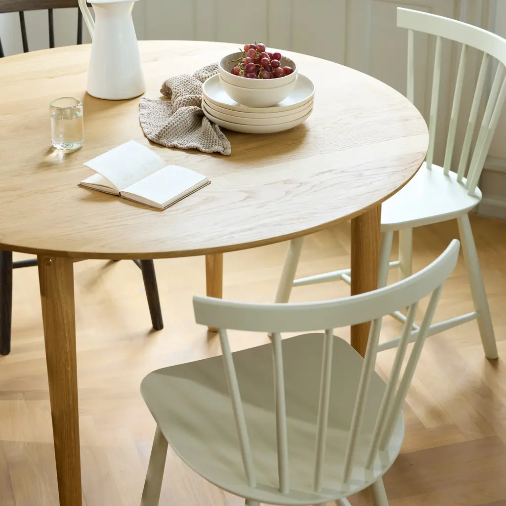 The C62 Bjork Dining Table masterfully balances tradition and innovation, embodying FDB Møbler's enduring design philosophy. Crafted from solid, FSC®-certified oak with natural knots and grain patterns, its rounded form creates a contemporary aesthetic that complements both spacious dining rooms and intimate urban kitchens. This versatile piece honors the company's heritage while pairing beautifully with classic chairs from FDB Møbler's golden age, representing the perfect synthesis of timeless craftsmanship and modern sensibility. Highlights