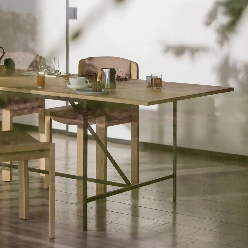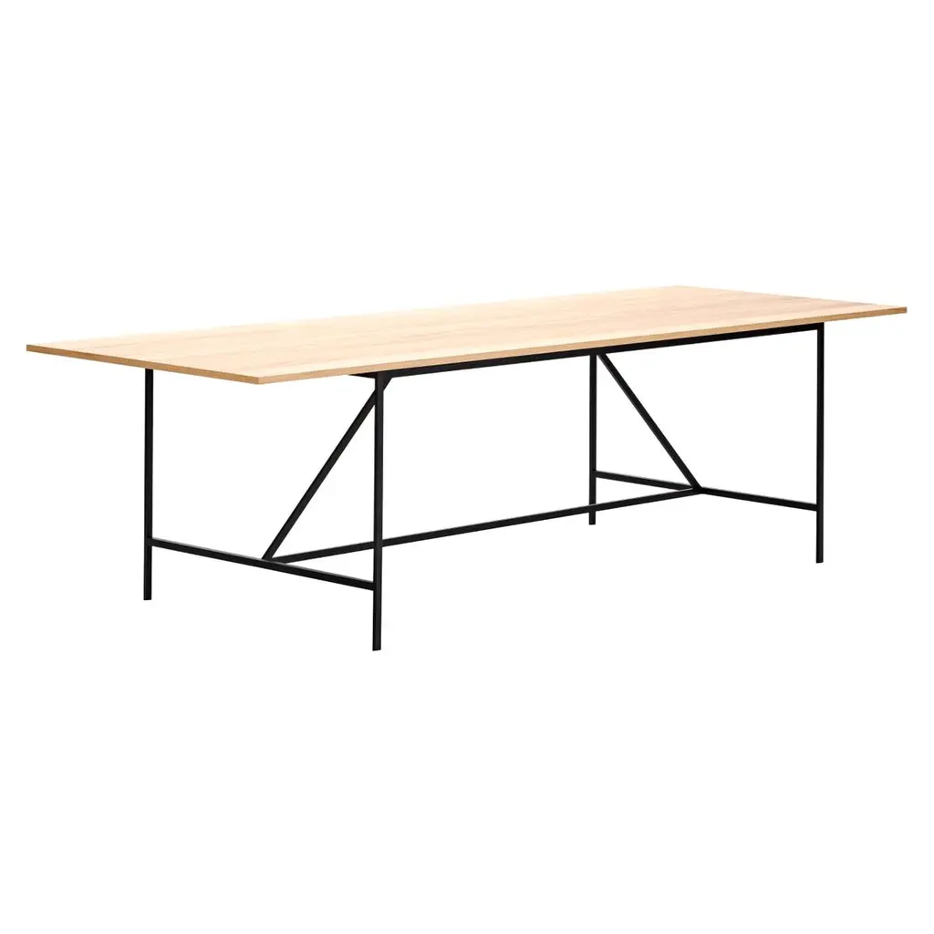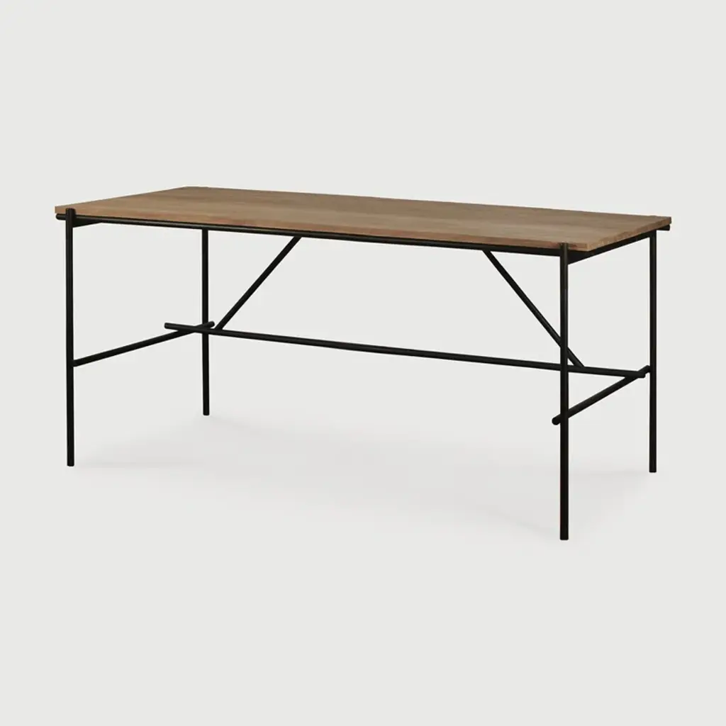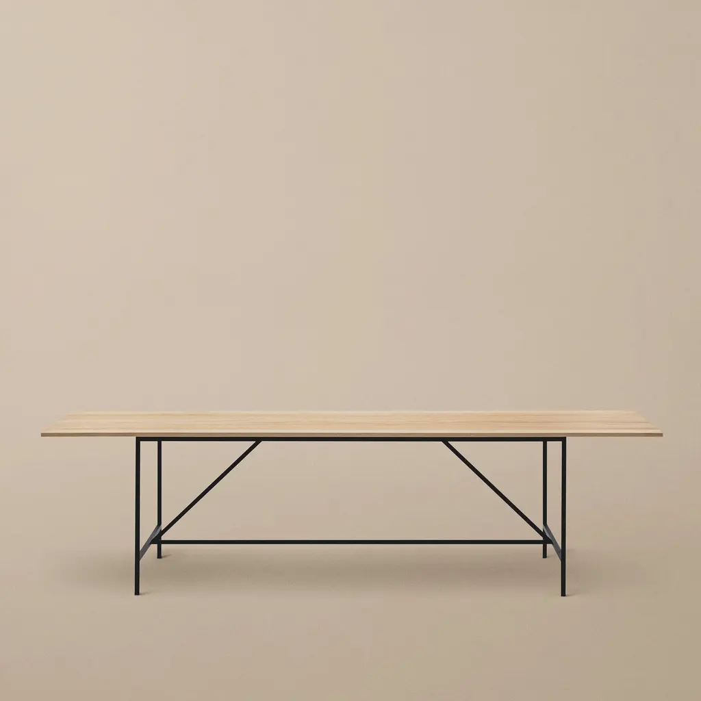 This wood-topped table with slim, straight steel legs and stripped of any details or ornament was first conceived by American designer Paul McCobb in the 1950s. The influential creator offered Cache as a part of his Planner modular furniture series that would help popularize the midcentury look. Though McCobb’s design is sleek and unadorned, the warmth of the oak-veneer surface makes the versatile table a genial choice for dining or work activities.