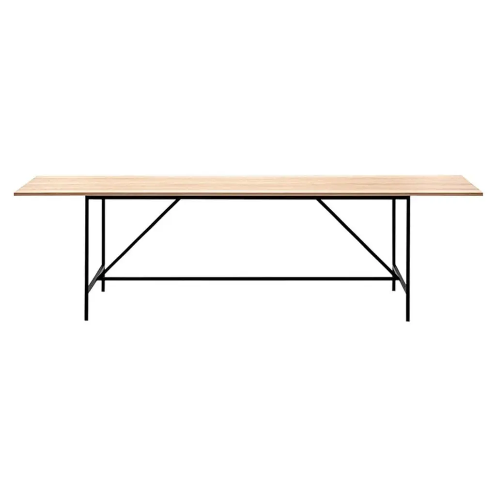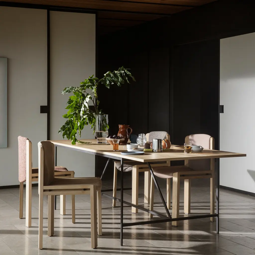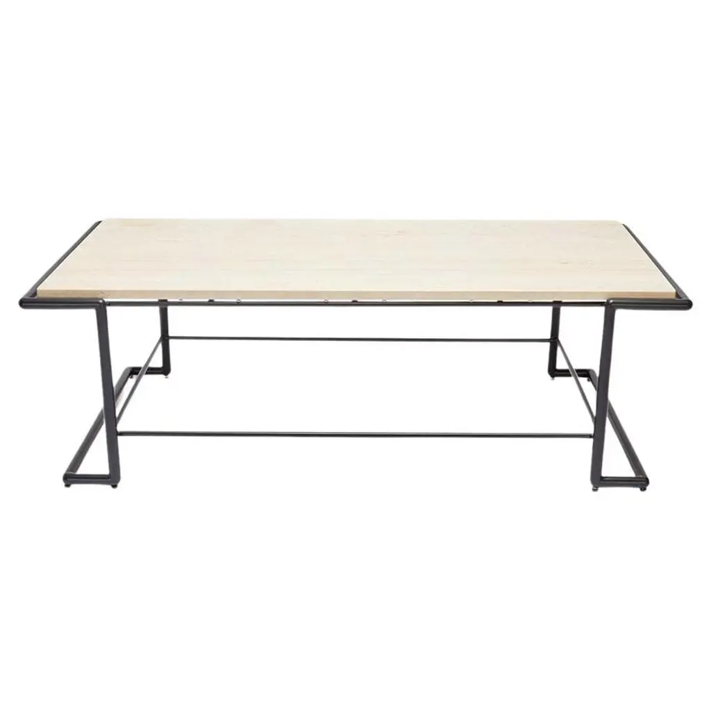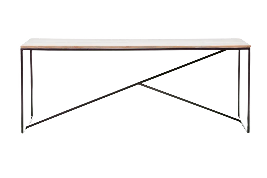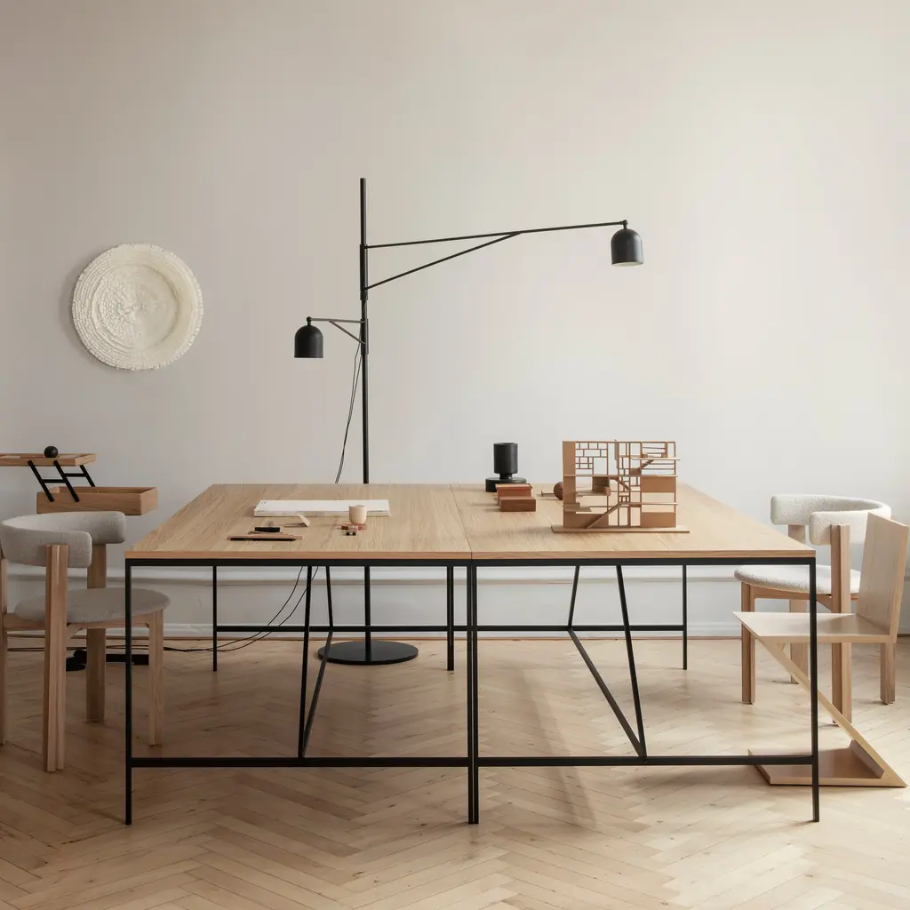 This wood-topped table with slim, straight steel legs and stripped of any details or ornament was first conceived by American designer Paul McCobb in the 1950s. The influential creator offered Cache as a part of his Planner modular furniture series that would help popularize the midcentury look. Though McCobb’s design is sleek and unadorned, the warmth of the oak-veneer surface makes the versatile table a genial choice for dining or work activities.