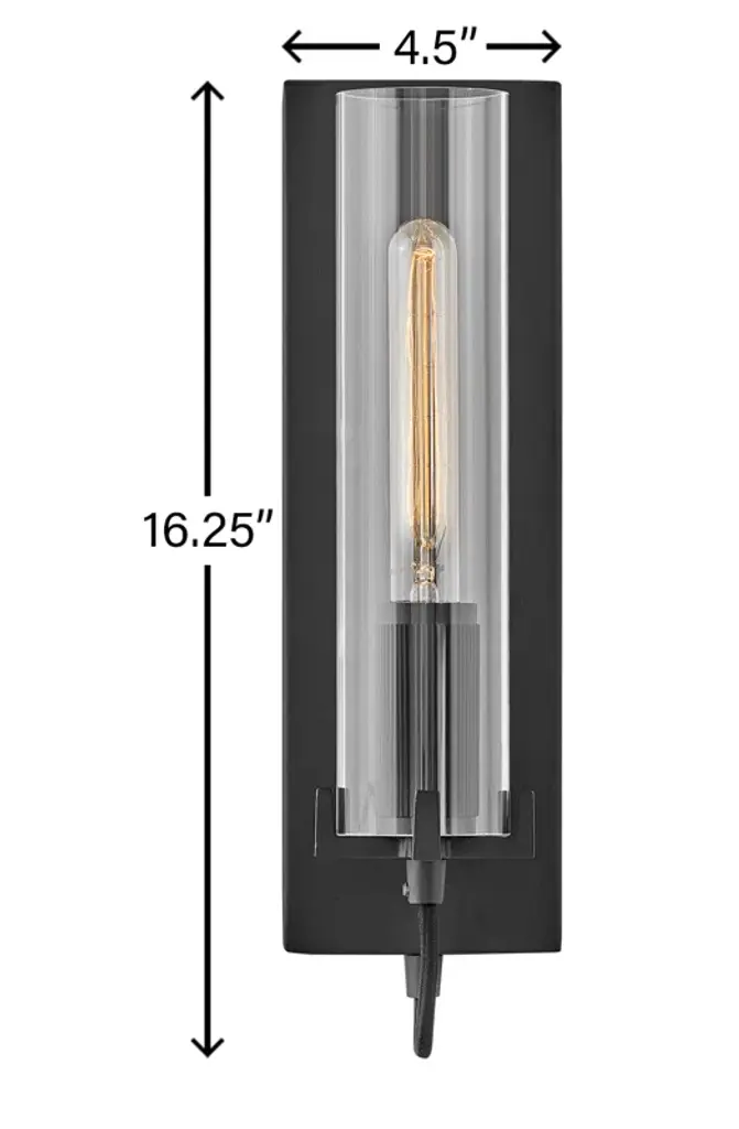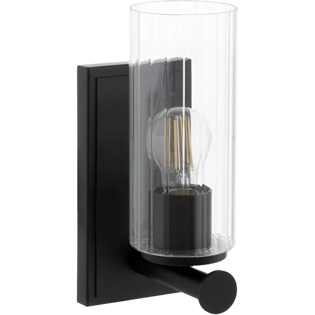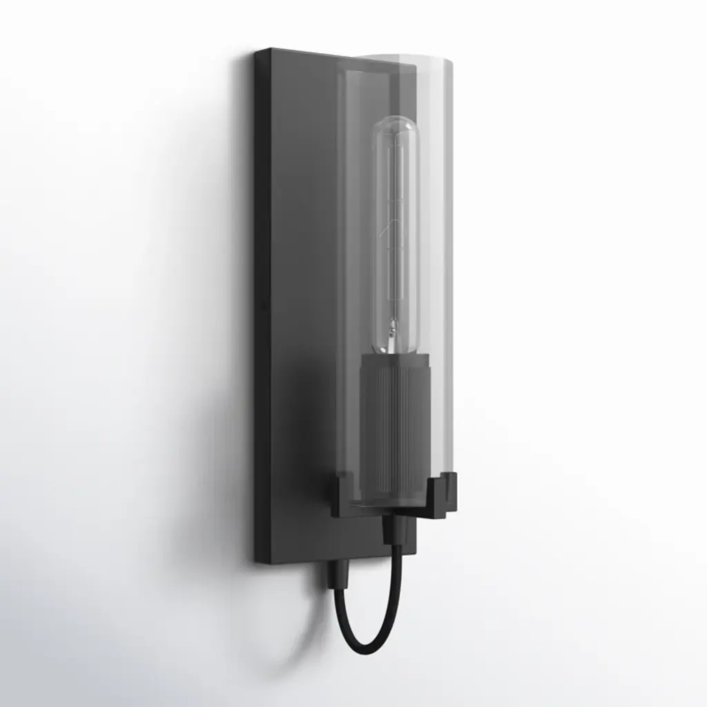 This Wall Sconce can create a cozy, elegant ambiance in any room and provide additional lighting where needed. This Modern Industrial vertical wall fixture features a slender backplate that frames the elongated cylindrical clear glass shade, supported by four robust cast prongs. Inside, a T-style 12w Medium LED bulb (not included) sits inside a knurled fitter pointing upwards. Ideal for hallways, bedrooms, living rooms, dining rooms, saving floor and table space.
