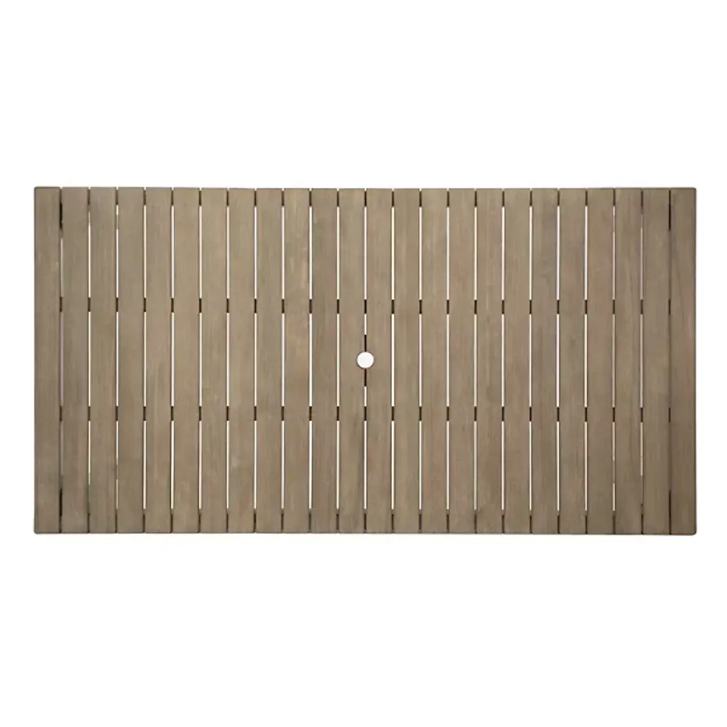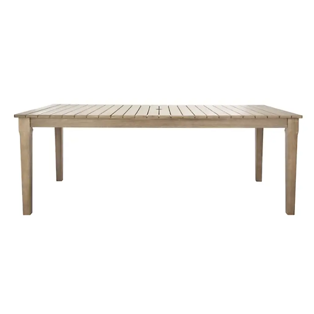 The Calavo Outdoor Dining Table from Alder & Ore uses precision-spaced slats that ensure proper drainage while creating an ideal dining surface. The eucalyptus wood construction demonstrates skilled joinery at every connection point. Metal reinforcements add structural integrity without compromising the table's clean lines. The liberal proportions easily accommodate large gatherings, making it perfect for outdoor meals and celebrations. The slatted design allows air circulation while maintaining a stable surface for plates and glasses.