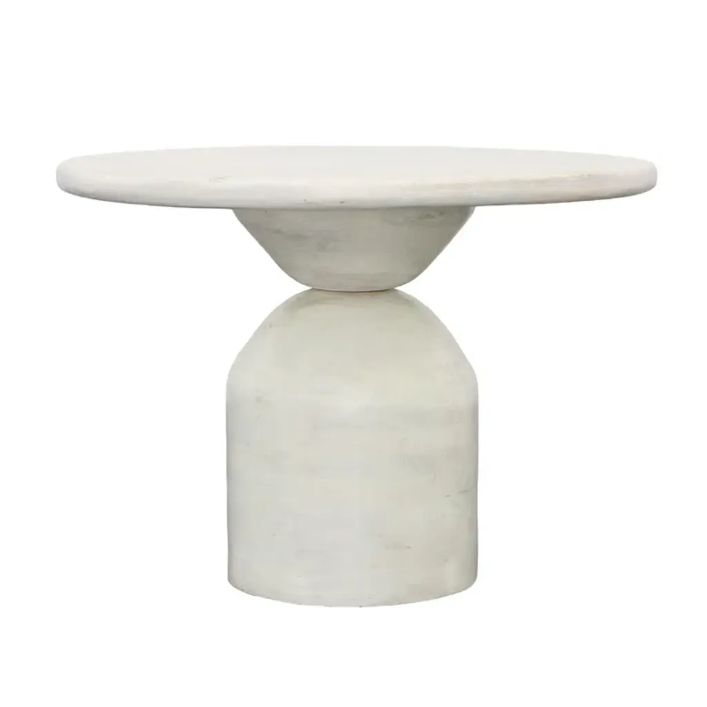 Expertly crafted from reclaimed pine wood, the small Caleb dining table sets the scene for a perfectly cozy dining space. Its pedestal base and round tabletop lend graceful curvature to your home. This beautifully versatile bistro table is finished by hand in a washed light brown hue.