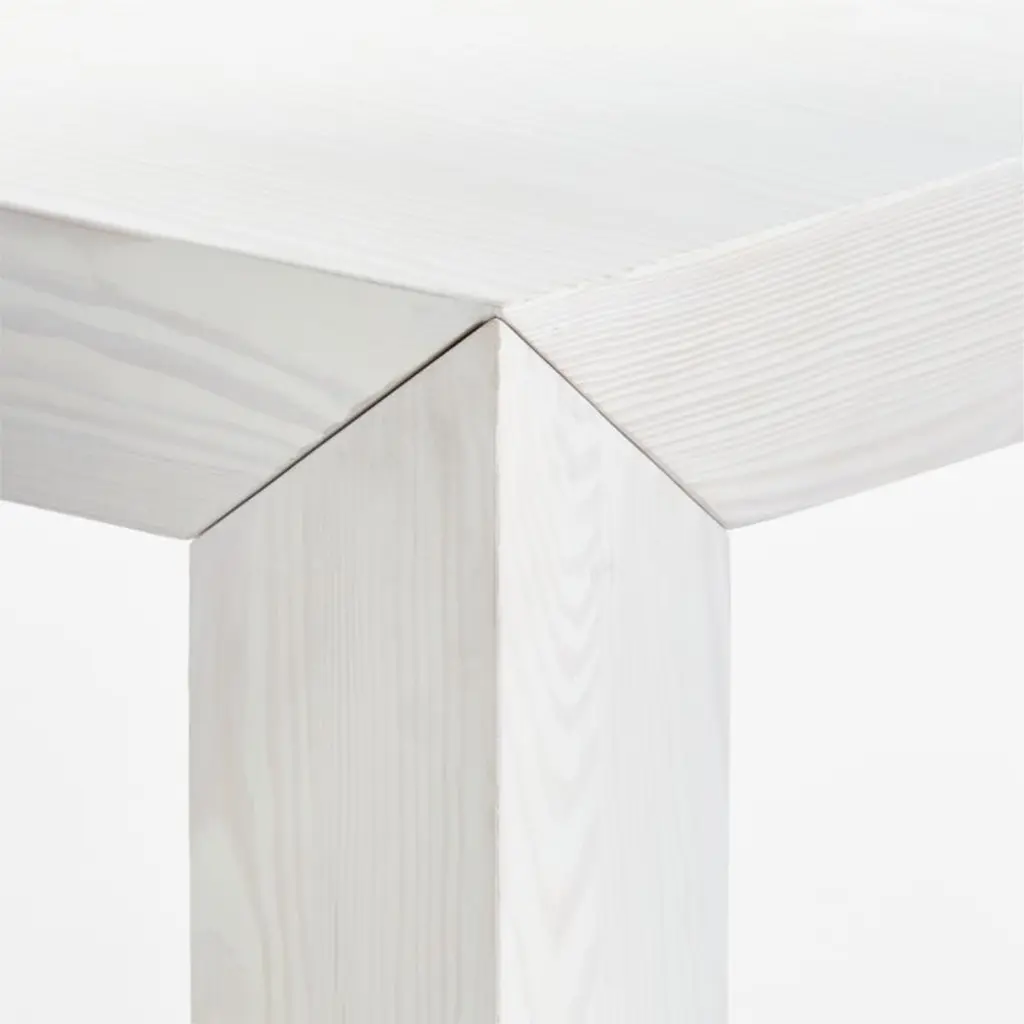 Raw in feeling, refined in execution, our Cali dining table combines a modern silhouette with rustic authenticity. The table's expansive top, triangular legs and beveled aprons united by crisply mitered corners create broad planes to highlight the natural beauty of pine. Heavily wirebrushed and given a light whitewash finish, the wood has a driftwood vibe that coordinates effortlessly with coastal, farmhouse or contemporary decor. Designed to seat eight, the Cali pine dining table is a Crate & Barrel exclusive.By choosing FSC ®-certified furniture, you are supporting responsible management of the world's forests.
