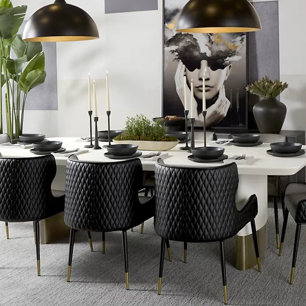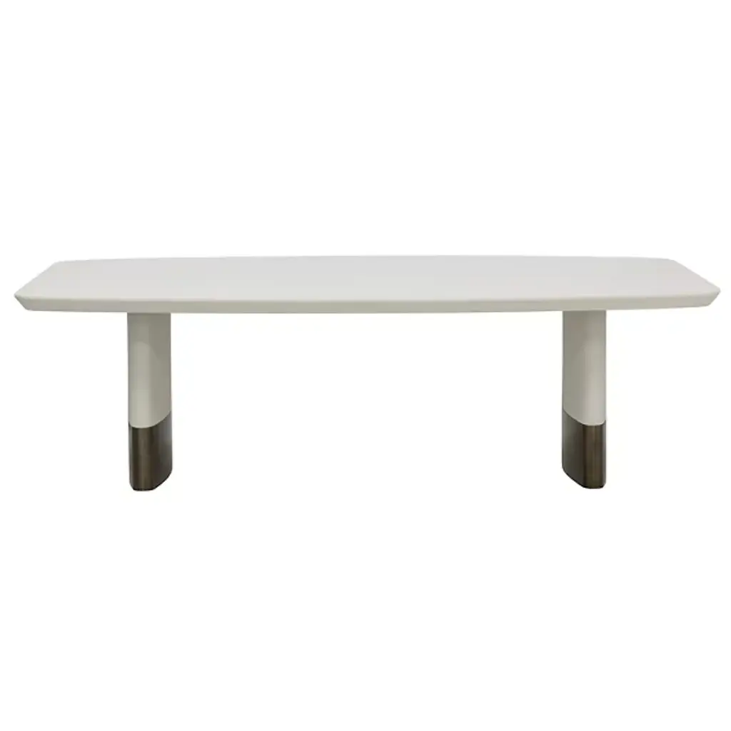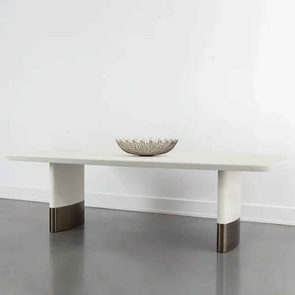 The Calida Dining Table from Sunpan offers style and functionality, bringing any dining space to life with its beautifully textured design. Generously sized, it is fully upholstered in pebbled cream faux leather, which is scratch-resistant and easy to clean. The look is elegantly finished with a brushed gold stainless steel base. Crafted to mimic the natural characteristics of leather, the faux leather showcases unique color variations, markings, wrinkles, and light scratches that add to its sophisticated appeal.