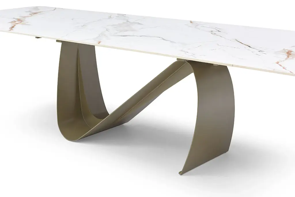 Elegant extended ceramic top (Kalalajin) Champagne-Bronze dining table. Table Top &