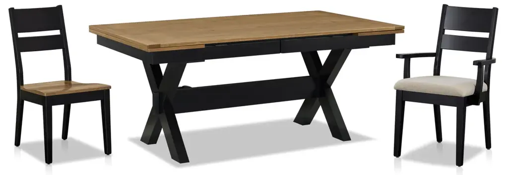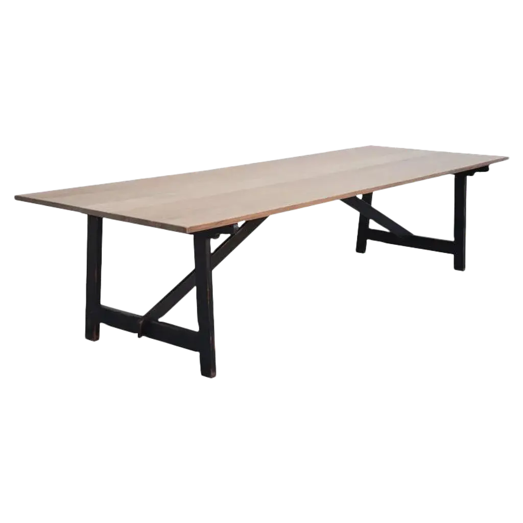 This rift sawn dining table with a painted base is seen here in 144" x 44", The table top comes apart from the legs which makes for easier transportation. We use only traditional carpentry techniques, no nails or metal fasteners of any kind. Just mortise and tenon construction reinforced with hand-cut wooden dowels.
