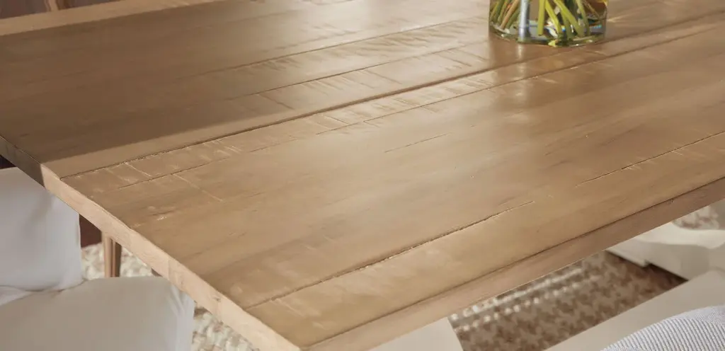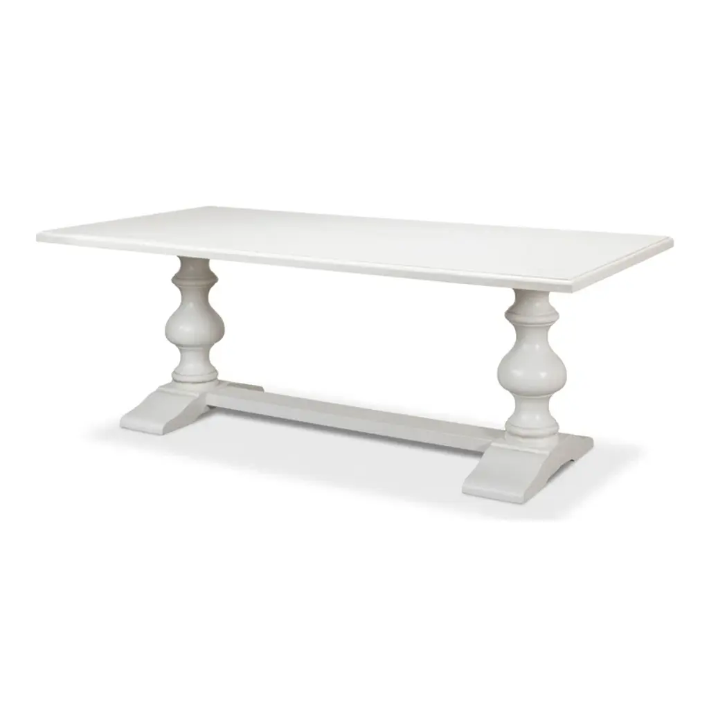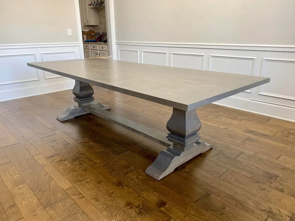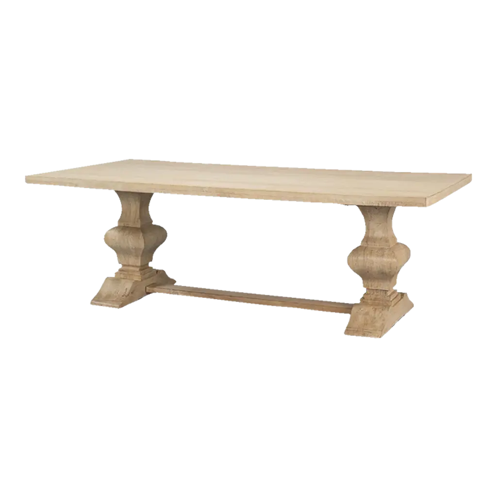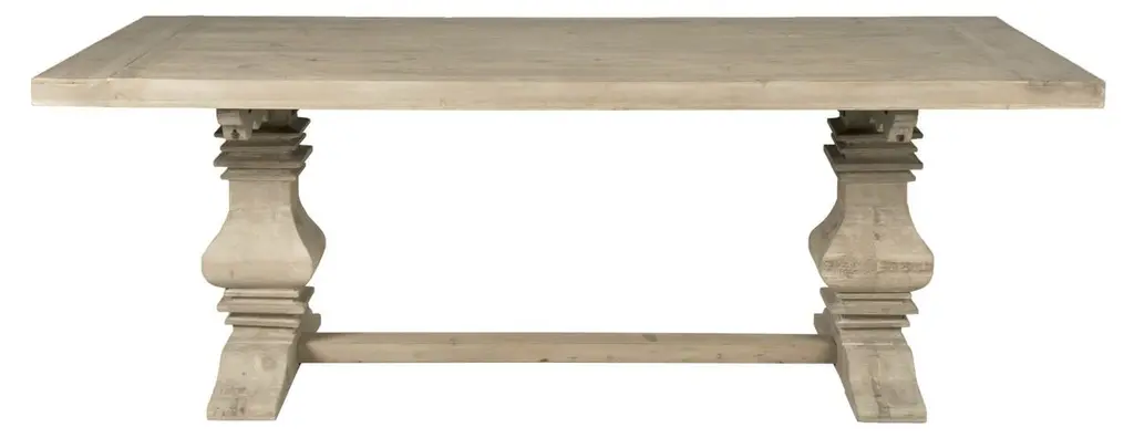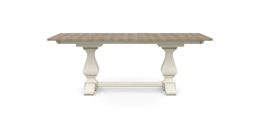 A brilliant nod to furniture-making tradition. This rustic pedestal dining table spotlights a fine attention to detail, with a rough-sawn top and intricate baluster designs. Crafted from solid maple or birch wood and available in solids as well as an array of two-tone color combinations.