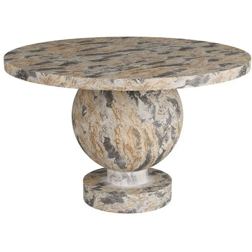 Capital Hand Carved Round Table With Beige Triton Walnut Base - Brown Marble Top
