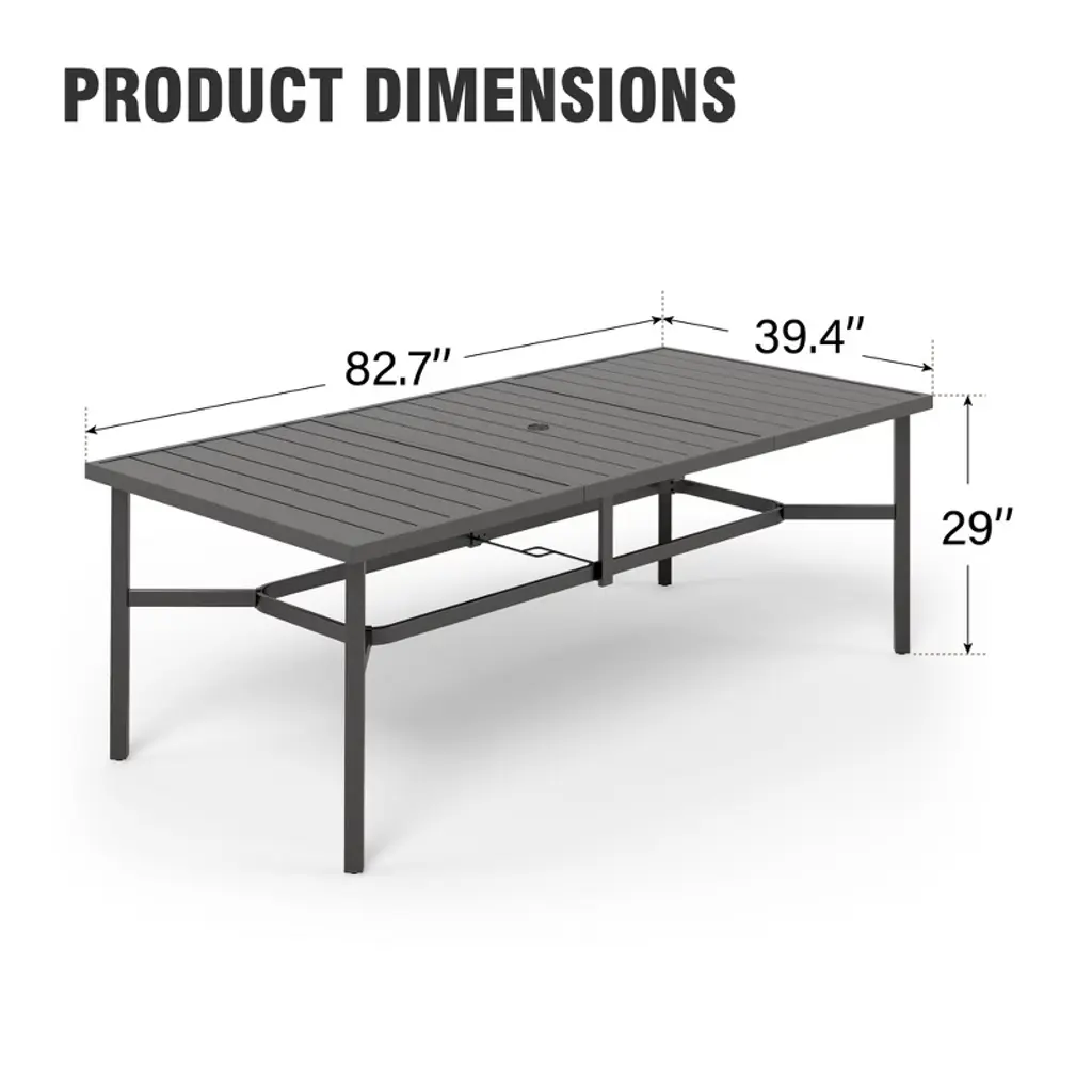 Captiva Designs 1Pc Outdoor Patio Dining Expandable Slat-top Rectangle Metal Table With Straight Legs