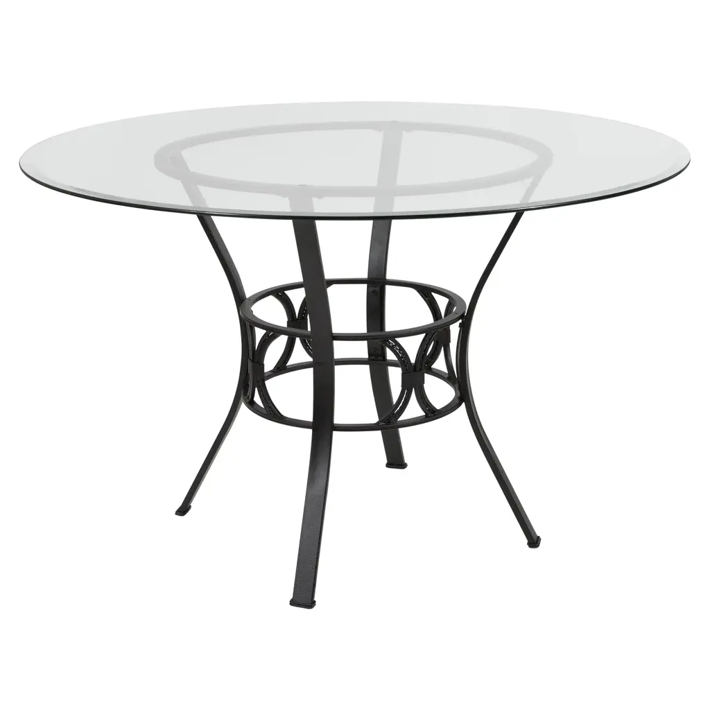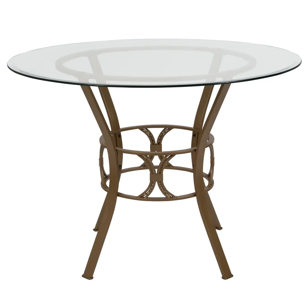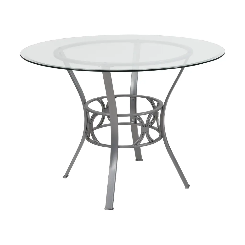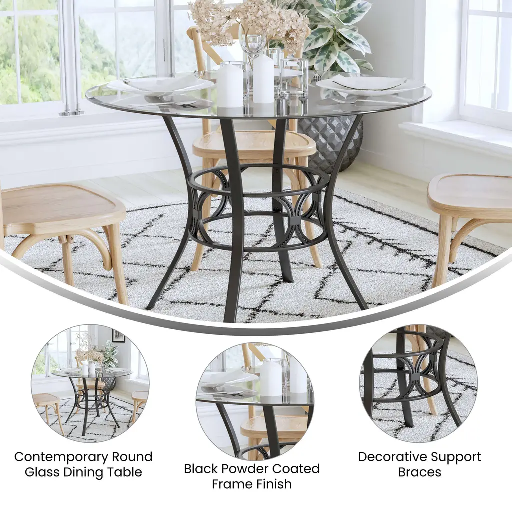 Carlisle 42'' Round Glass Dining Table With Crescent Style Metal Frame
