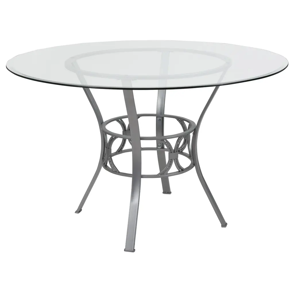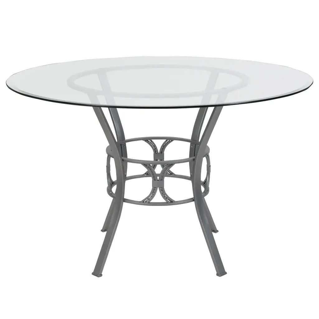 Carlisle 48'' Round Glass Dining Table With Crescent Style Metal Frame