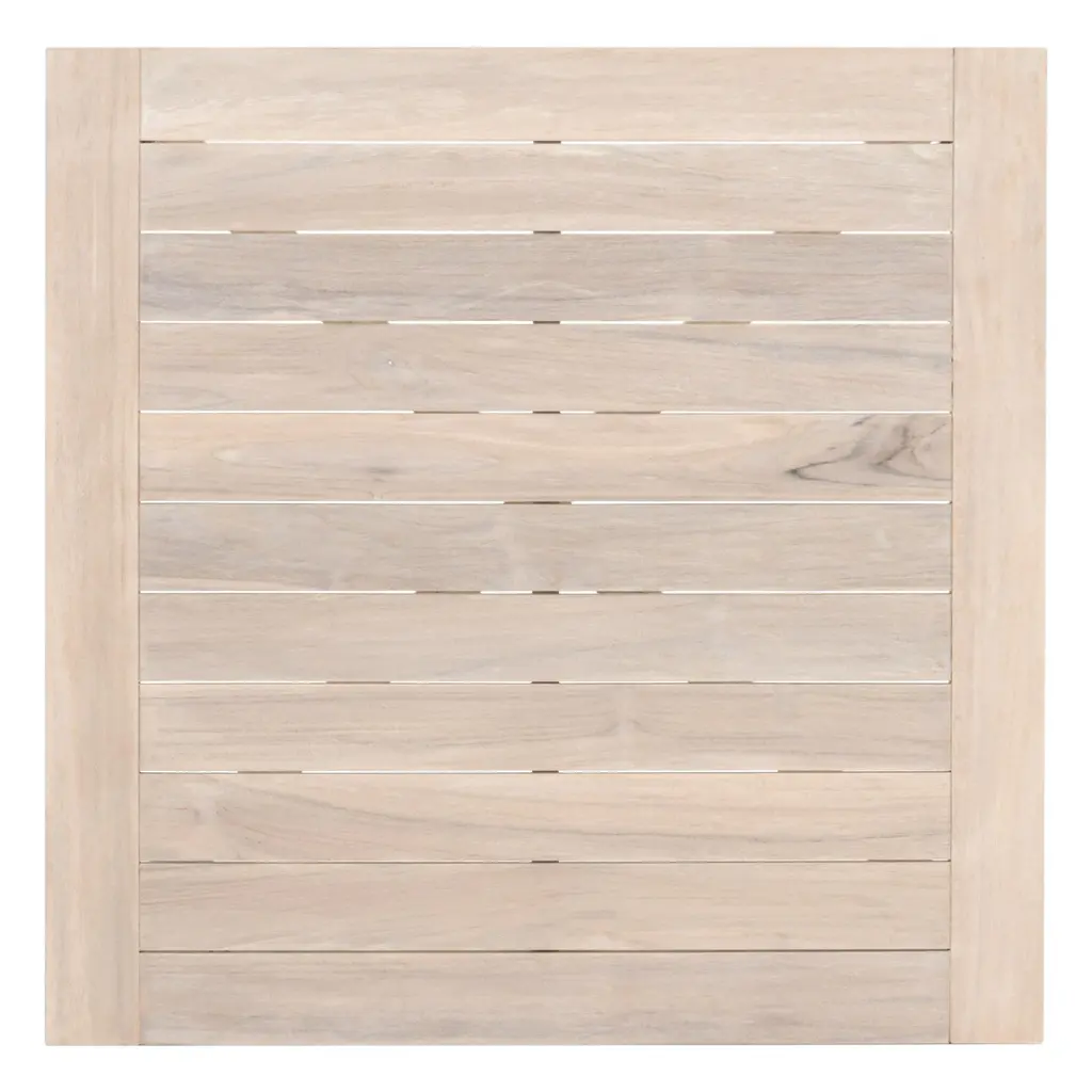 Bring transitional style to your backyard with this outdoor square counter height dining table. Suitable for both indoor and outdoor use, this pub style dinner table is made of a gray teak wood. The teak wood features a lot of natural oils, making this table ideal for backyard patios and porches. Seat up to 4 people while enjoying the outdoors with the slat-style wood table.