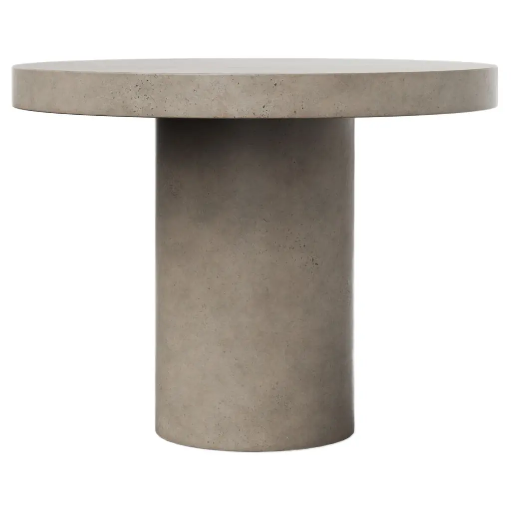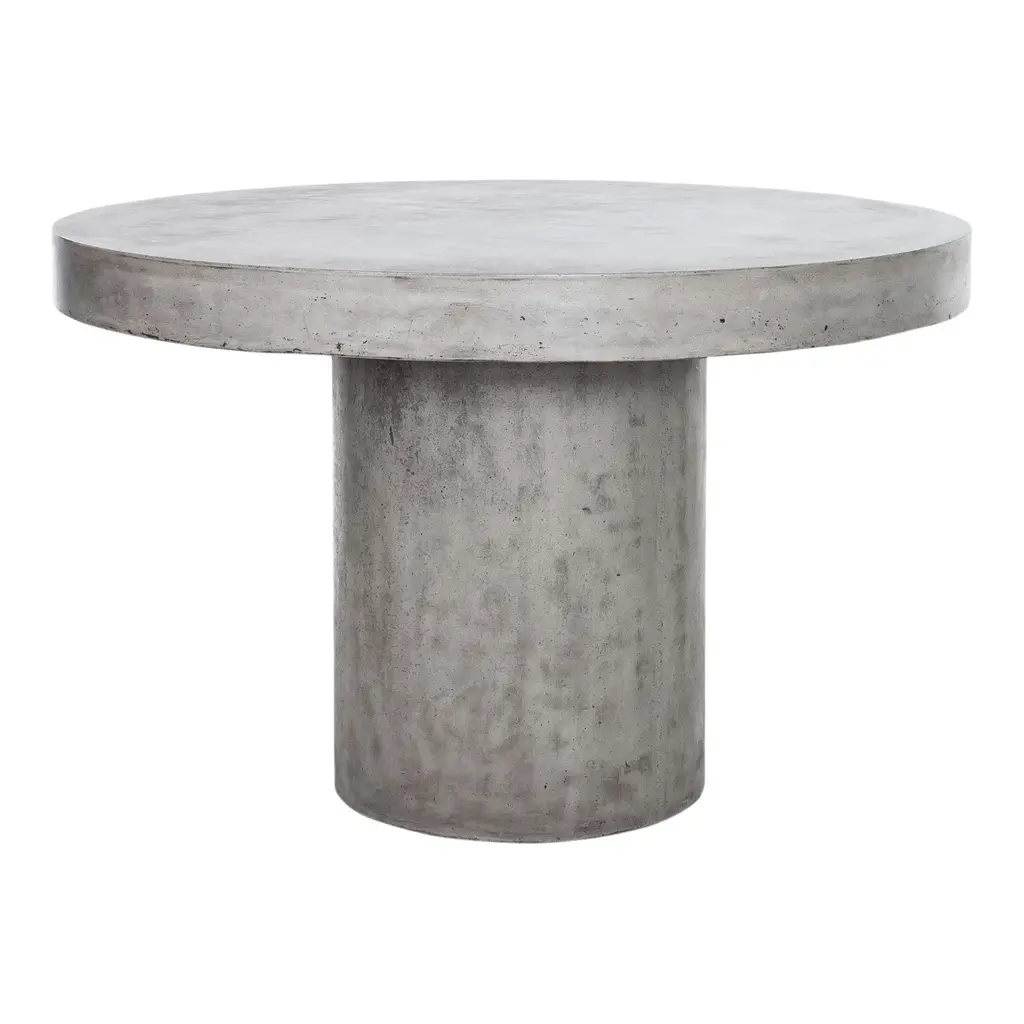 Keen on concrete to bring the outdoors a little closer. A hard material for softer contrast, the Cassius outdoor patio table is the perfect transitional piece for alfresco living. Both durable and eye-catching, this round pedestal table is made from fiber-reinforced concrete that helps to prevent cracking. Here to give your outdoor dining area a sleek, modern look with a hefty pillared base and a thick, matte, circular tabletop. Ideal for any garden or patio setting, this dining table works indoors as well as a stately, contemporary design.A transitional, contemporary piece for any garden or patio setting, the Cassius pedestal outdoor dining table is both durable and eye-catching in fiber-reinforced concrete. Concrete & fiber-mix concrete materials make for lighter-weight, durable outdoor pieces. Still, they are unique composites that will vary in color, pattern & texture. No two items made from these materials are alike & product imagery may vary slightly Circular table top with pedestal base Spacious seating for up to 4 Some assembly required 1 Year Warranty covered on Manufacturer Defects