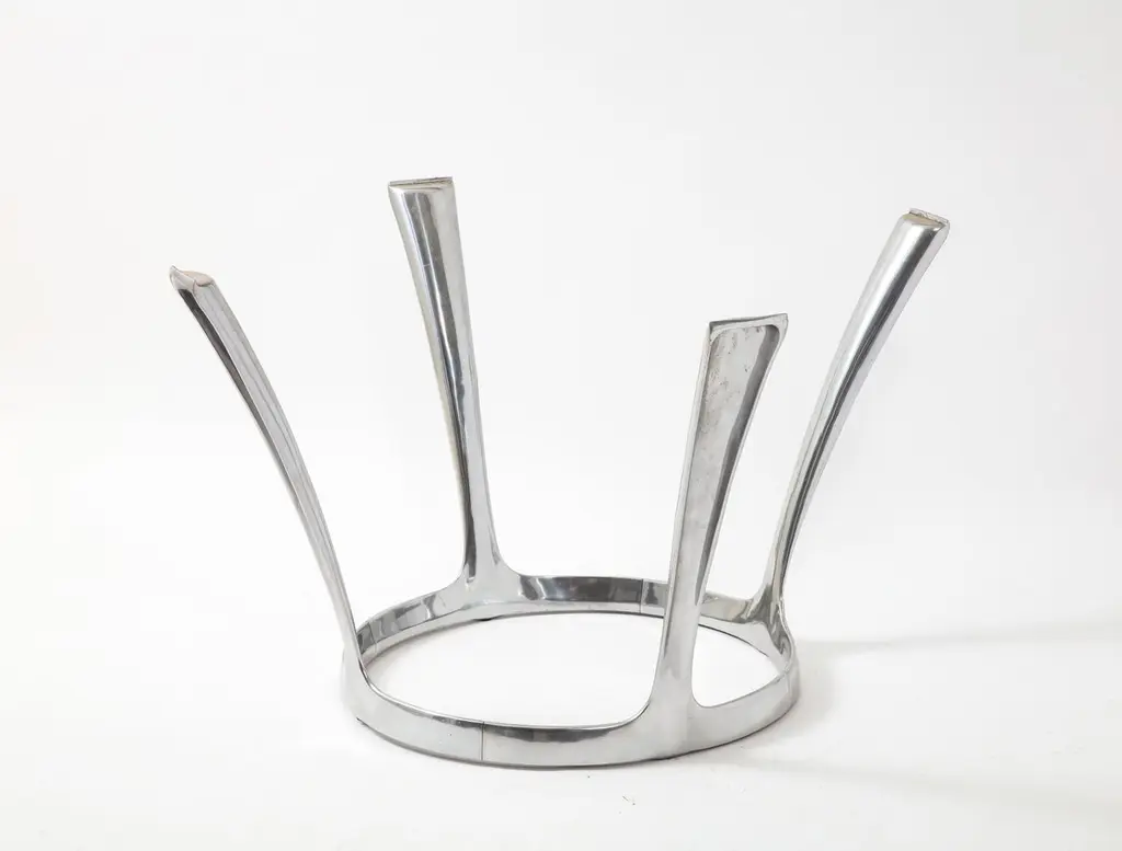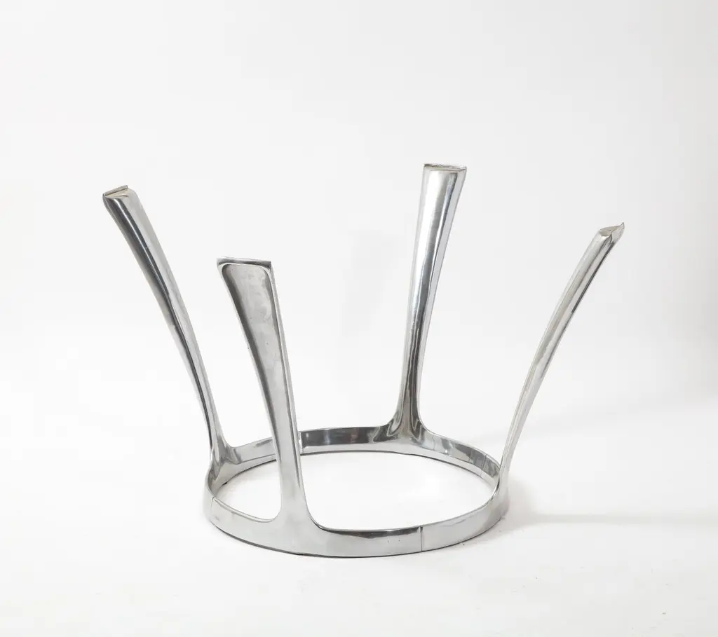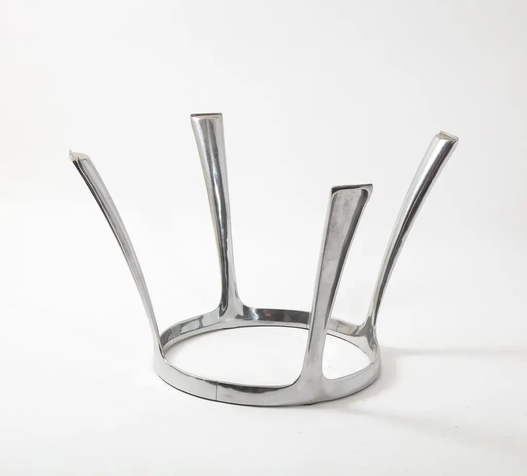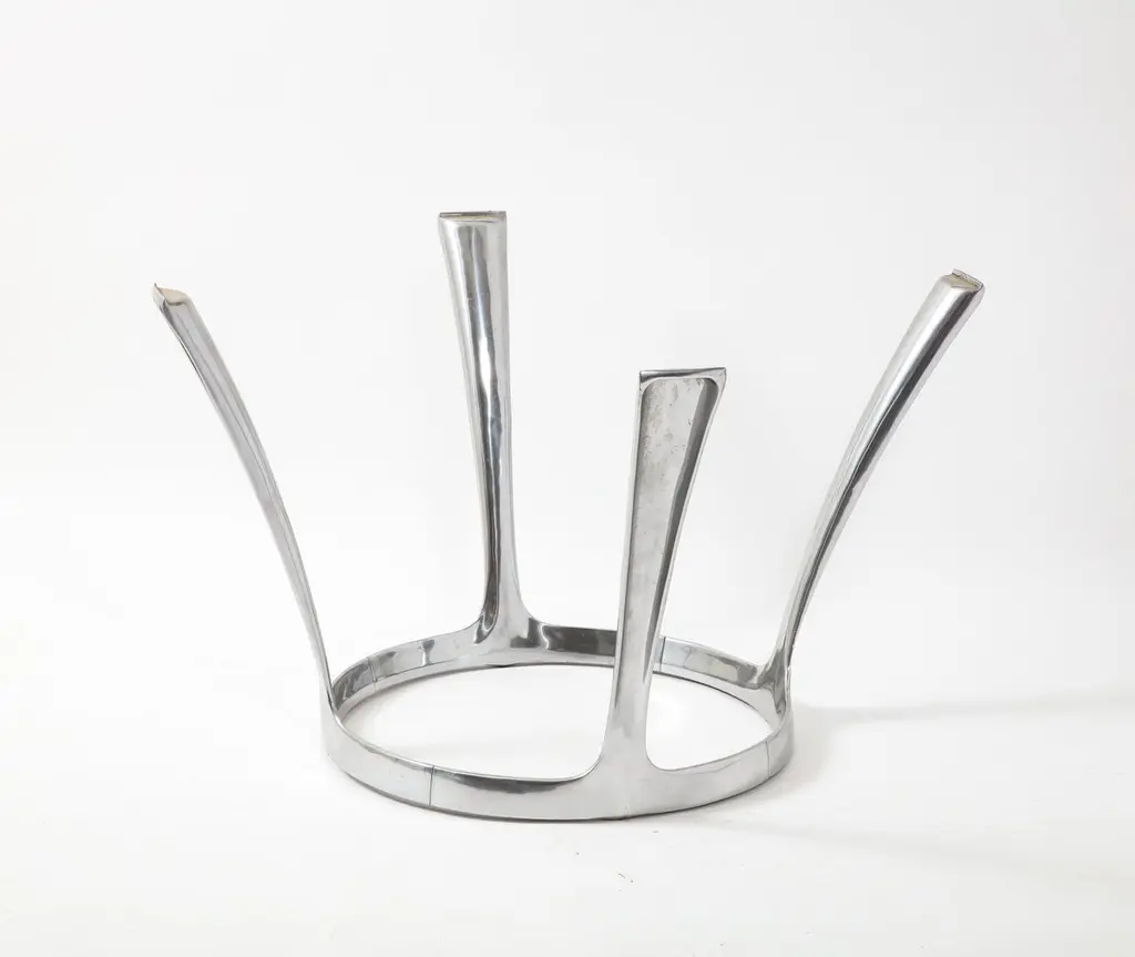 Cast aluminum dining/ Center table base, made of 4 solid aluminum pieces (can be disassembled for shipping). we can assist with your choice of glass, stone, or wood top. The price is for the base only. Two bases available