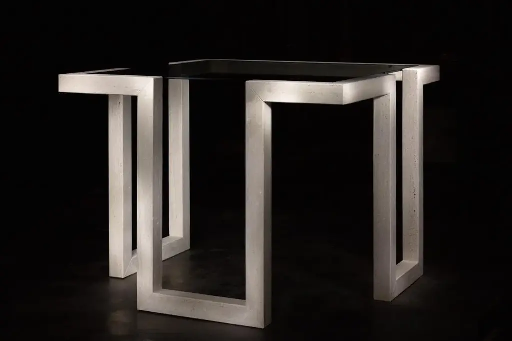 Piece presented at Milan Design Week, Synthesis Collection by Joaquín Moll for Meddel. Inset glass, counter height. Labeled by Maker