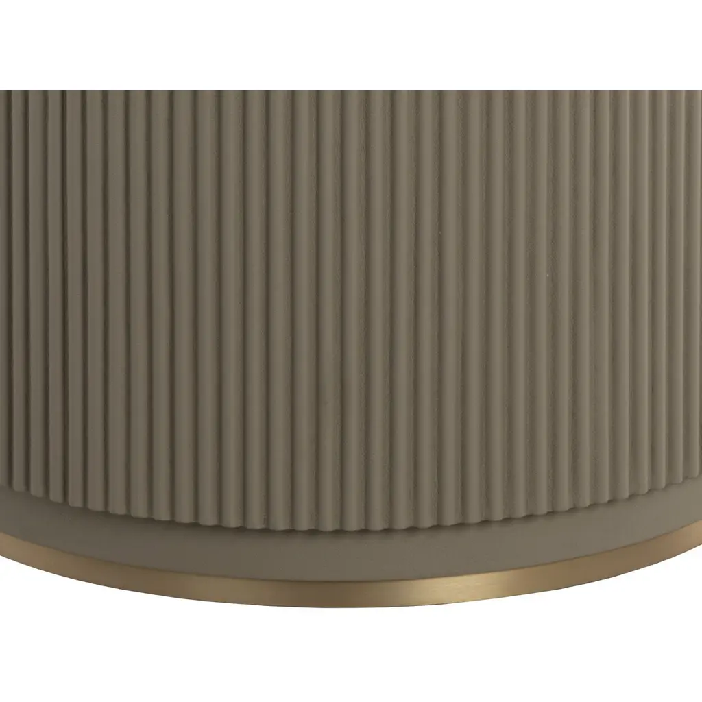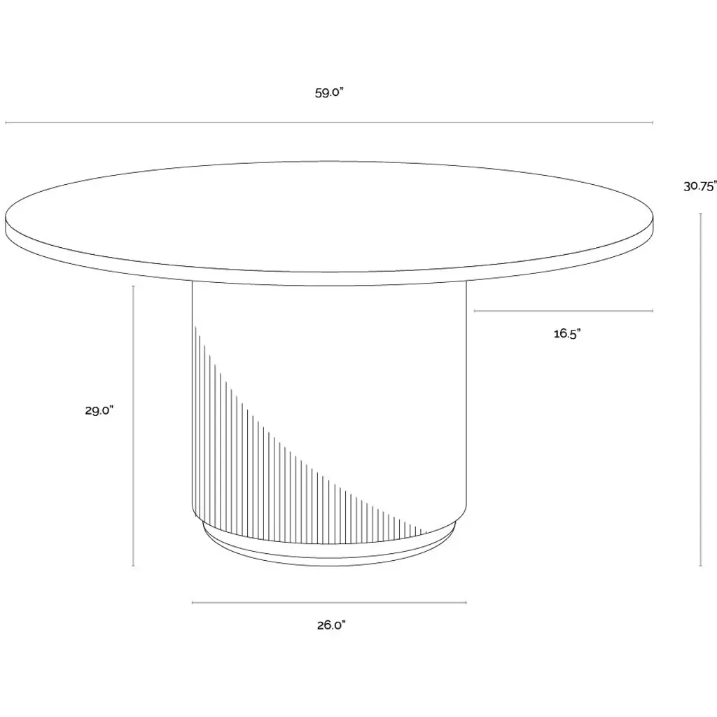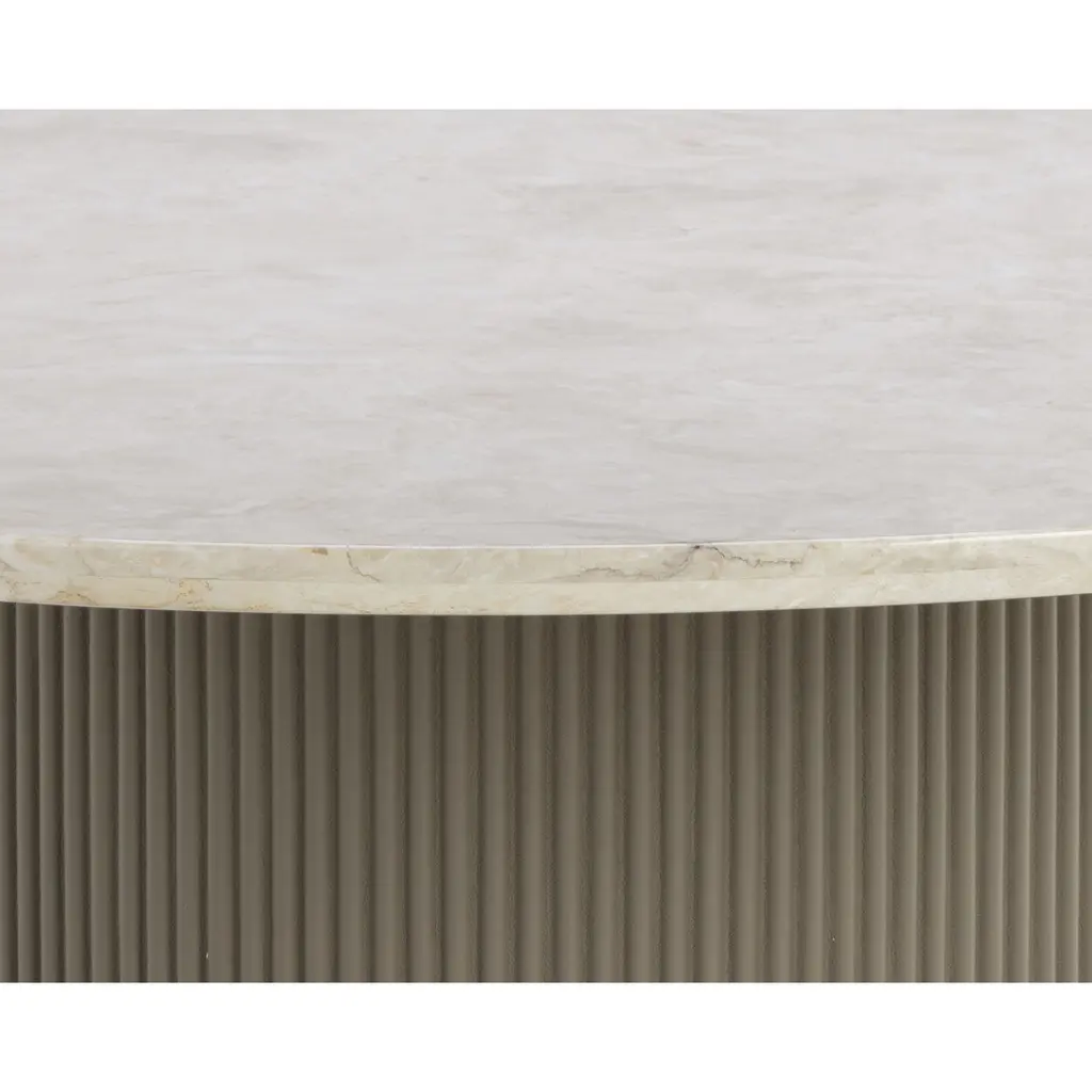 Refined mixed materials with an architectural influence define the Cataldi Dining Table. Fluted detailing in the taupe faux leather base adds intriguing texture that contrasts against the smooth polished beige marble tabletop. Gold stainless steel trim at the bottom of the base finishes the piece. As marble is a natural material, unique veining, pitting, fissures, micro-cracks and colour variations are all characteristics that add to the uniqueness and beauty of each piece. Handle With Care: This design has been crafted with faux leather. Faux leather is manufactured to reflect the natural characteristics of leather as such, colour variations, markings, wrinkles, grooves, and light scratches are appreciated characteristics. No two pieces will be alike. Visit our Product Care page for more information on how to ensure the lasting beauty of this piece.