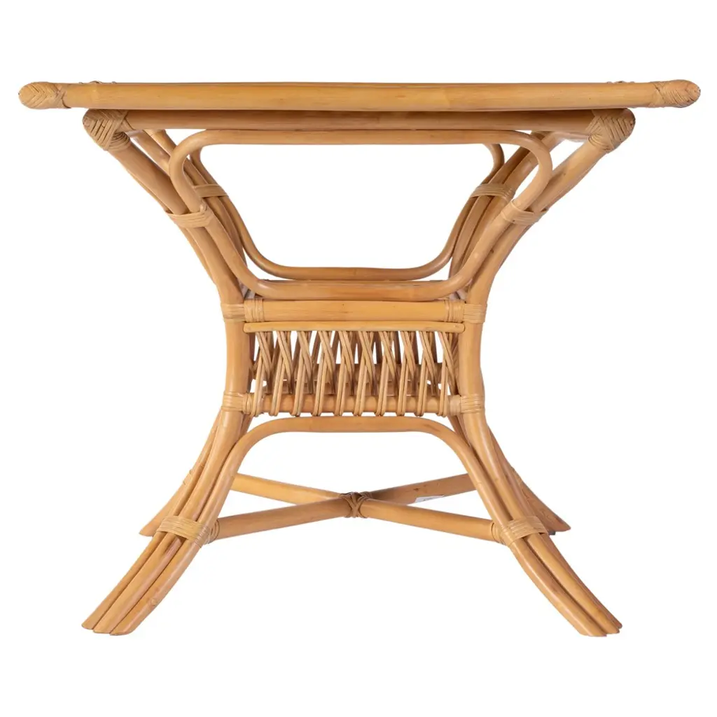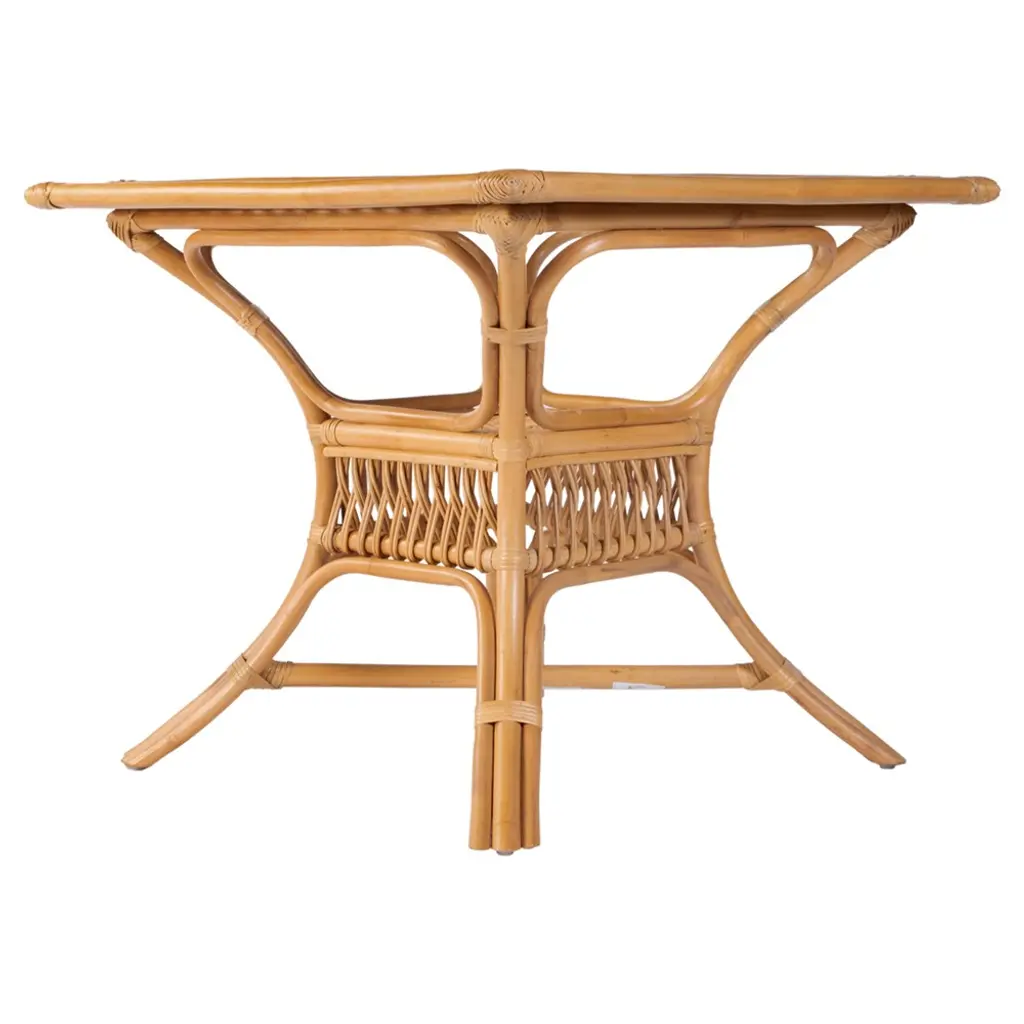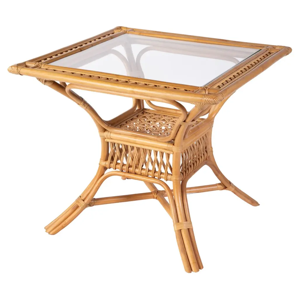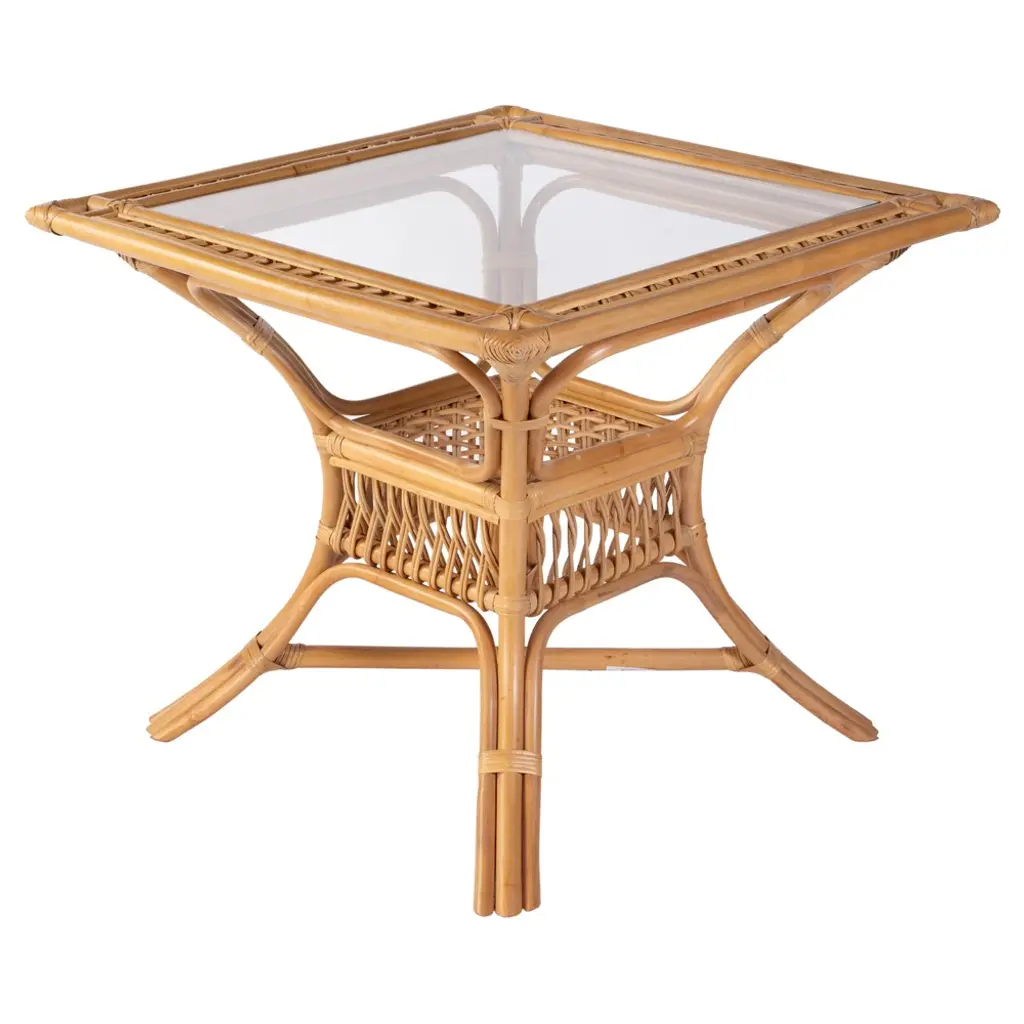 Cayden Coastal Beach Glass Natural Rattan Square Dining Table - 34"