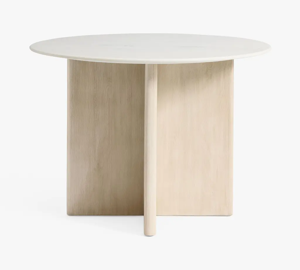 A salute to minimalist design, the clean-cut Cayman Collection has a timeless look that's warm and welcoming. Crafted from mango wood and natural stone, it has a dimensional finish that adds character to each piece. The compact, six-person table strikes a modern balance between clean lines and gently rounded corners.