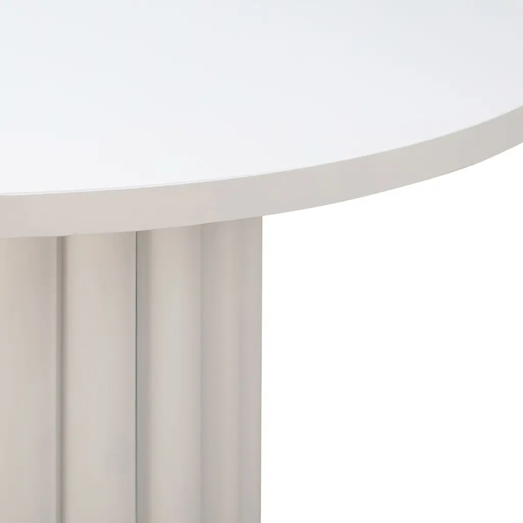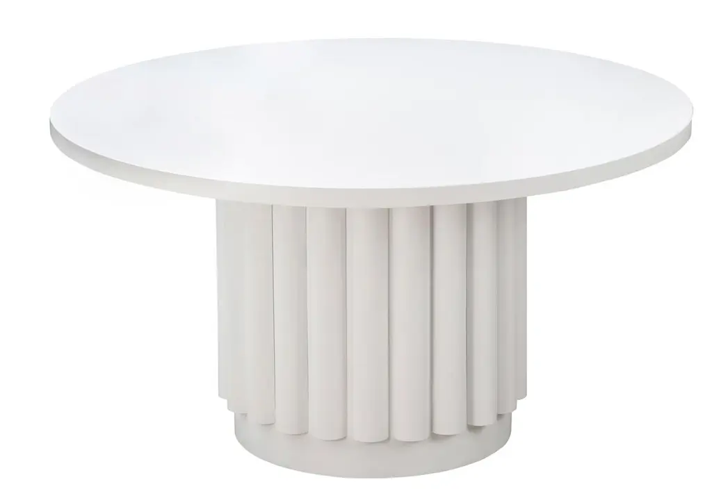 This handcrafted dining table will transform any dining room or breakfast nook into a glamorous gathering space. The fluted pedestal provides a textural contrast to the smooth top. At 55 inches in diameter, the table can seat five people.