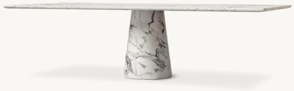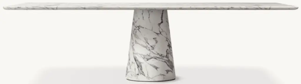An archetypal 1970s silhouette, our Cellini table exhibits the tailored restraint and understatement of Italian minimalist design. Crafted of natural stone, the form's gracefully tapered pedestal and smoothly rounded top communicate an organic purity, replete with natural veining and pitting that make each table unique. SHOP THE ENTIRE COLLECTION